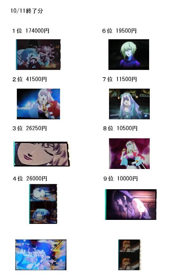 714 10/6 BEST10 2010/10/07(木) 05:31:00 ID:HvsS6UEO 過去最高額の15万超え出たのでまとめ画像だけ