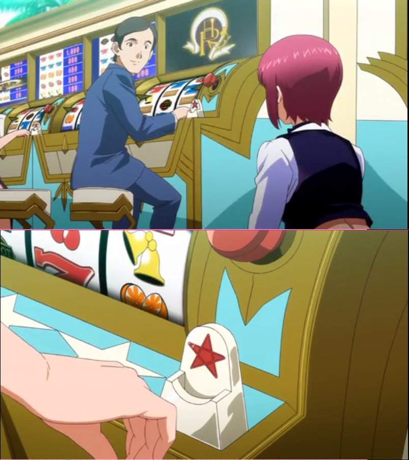 この画像を見てほしい。客が落としたコインでジャックポットを出すシーンなのだが