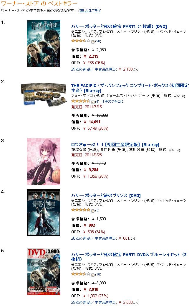 このままいくとワーナー1位になるぞw
