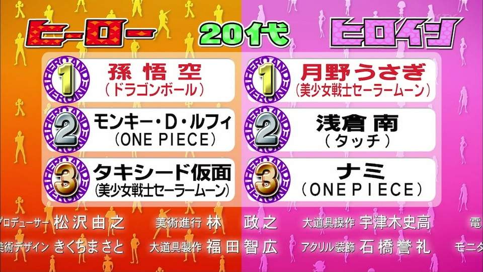 20代でナミが3位とか無いわ.ナミって胸でかいだけで魅力ねえし.ビビの方がかわいい.