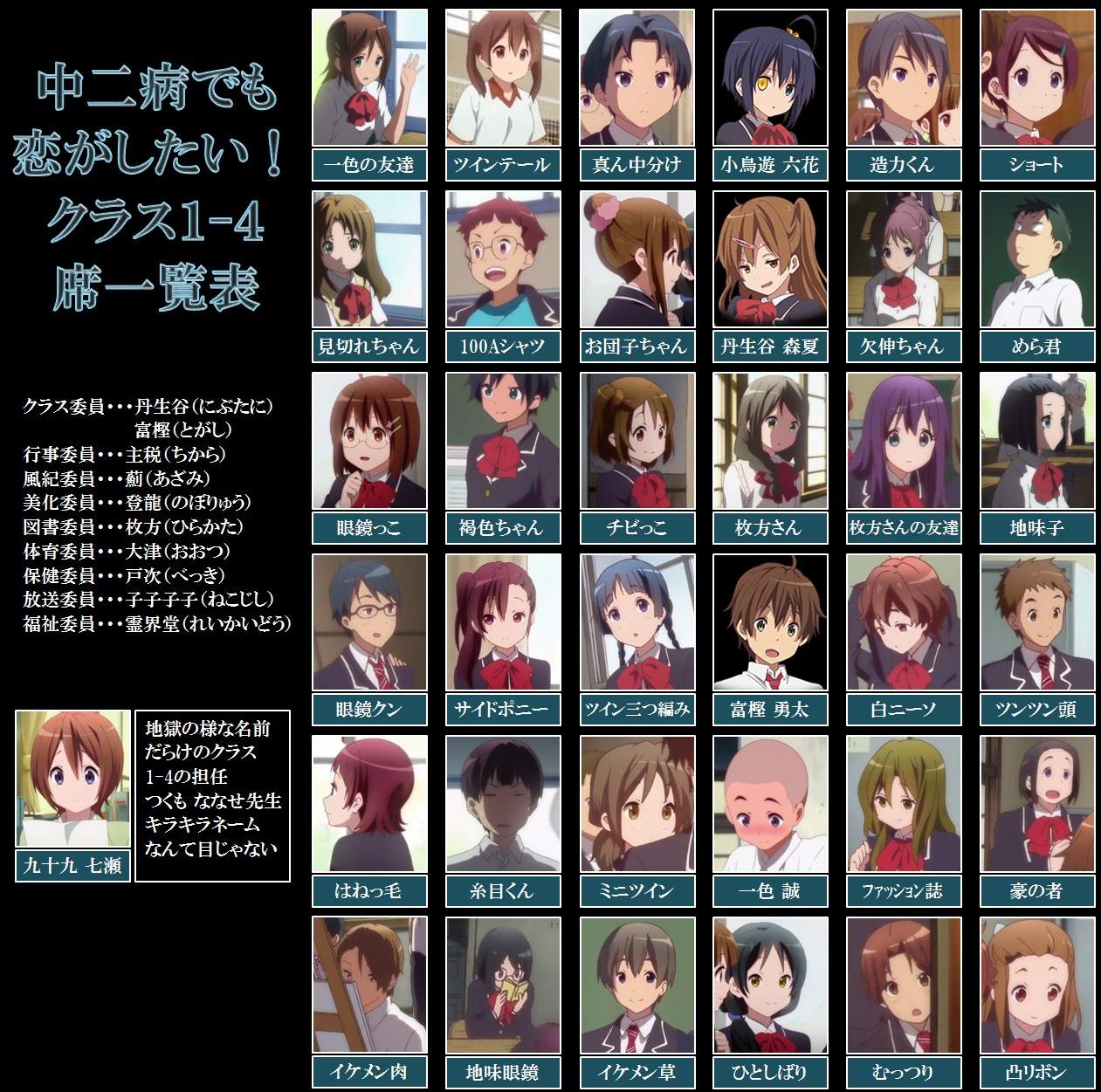 頻繁に映す場合は、作画の手間的に窓際後ろが定番にどうしてもなるが。