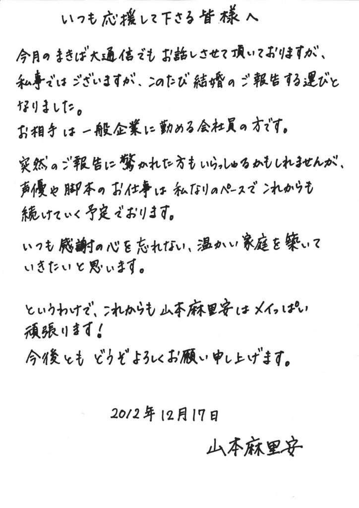 女性声優結婚で必ず名があがるってどーだろ・・・