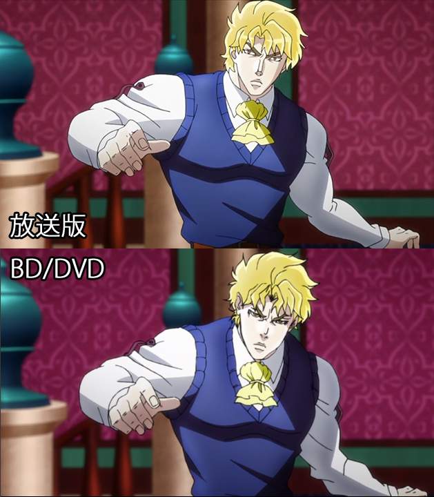 ディオの顔に限れば、子供っぽさはTV版、悪役っぽさはBD版の方がよく出てるな