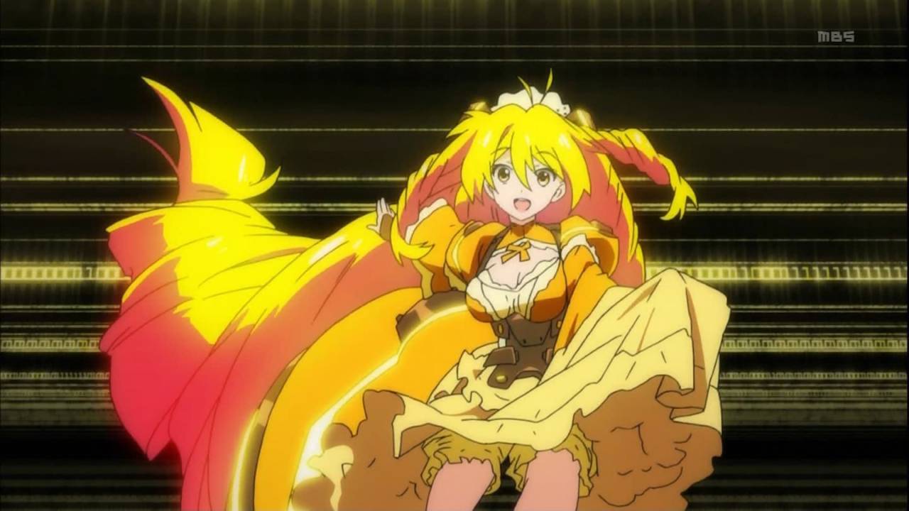 変身モノの黄色の巻き髪の巨乳の中学生のゴスの複数小銃からの必殺技が巨砲だぞ