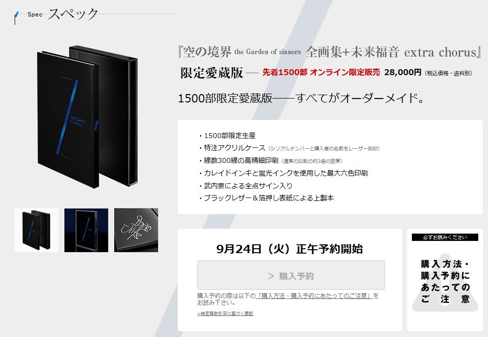 【空の境界】『空の境界 the Garden of sinners 全画集+未来福音 extra chorus』通常版&限定愛蔵版発売決定!!詳細はこちら→最前線 http://t.co/63uaVVKEsU #sai_zen_sen #rakkyo