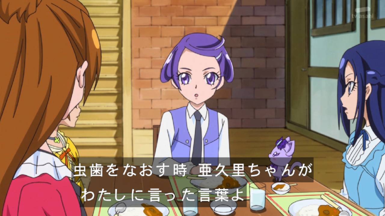 大抵の子供は亜久里のように嫌いな食べ物(特に野菜)があります。当然、好き嫌いは栄養の偏りがある食事(いわゆる偏食)を引き起こす原因となり、発育上よくありません。子供達に好き嫌いをしてはいけません、歯磨きをしましょう、(次回の)夜更かしをしてはいけませんということを分かりやすく楽しみながら教えれるのは、ドキプリにテーマの芯がある証拠なのでは。子供向けだからこそ可能な唯一の特権でしょうね