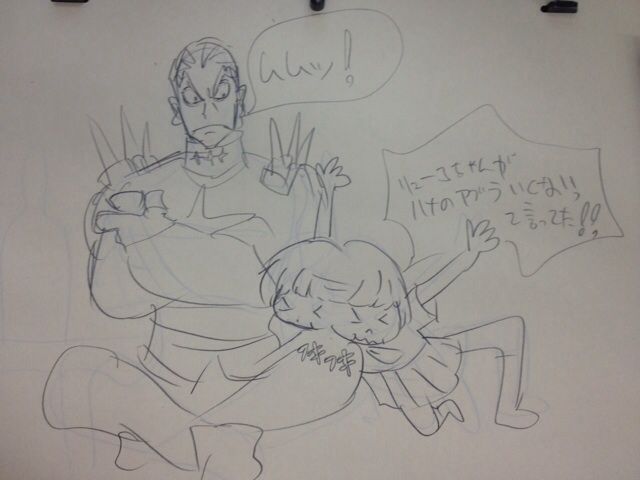 さすがに直塗りではなく、手についた脂をなすりつける形でしたが、拭かれたのは正に左膝でした。&vquot;@waka_geek: 稲田さんの素敵エピソードがすしおさんの絵に!すごいコラボ #Kill_la_Kill RT @sushio_: RT←http://t.co/1GdP6d7BdM&vquot;