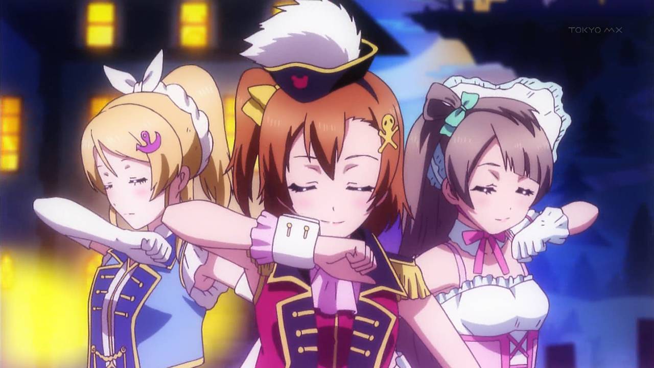 ギャグ多めのハロウィン回!衣装色々変えてるだけでも面白かったけど、キャラチェンジは声優さん流石で思わず吹き出したw相変わらずテンポ良いし、最後にはイベントとして新曲披露と豪華!前回も新曲披露してたし、ラブライバーは試されるな…