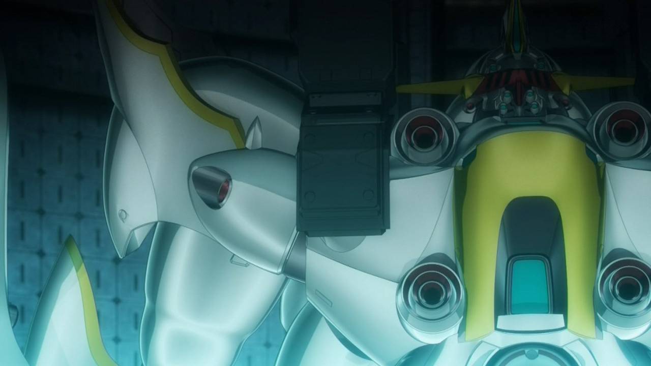 アルドノア・ゼロ。10話。速水奨のマシンの背中なのか?絶対に2段変形するぞ、この大きさなら中から小型人形か、自動車メカに違いない。スレインくんはドライブを起動できるのか?姫さんを思うストーカ魂で補え!