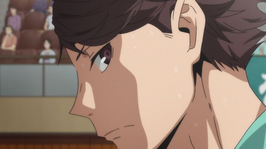 影山の最後のトスのシーンに、及川さんの顔がうつった時、その顔が何か悔しげに見えた。似た場面で及川は両手でトス上げたけど、影山は片手でみたいな…。あきらかに考えすぎだけど、見てて「あっ」て思ったんだ。