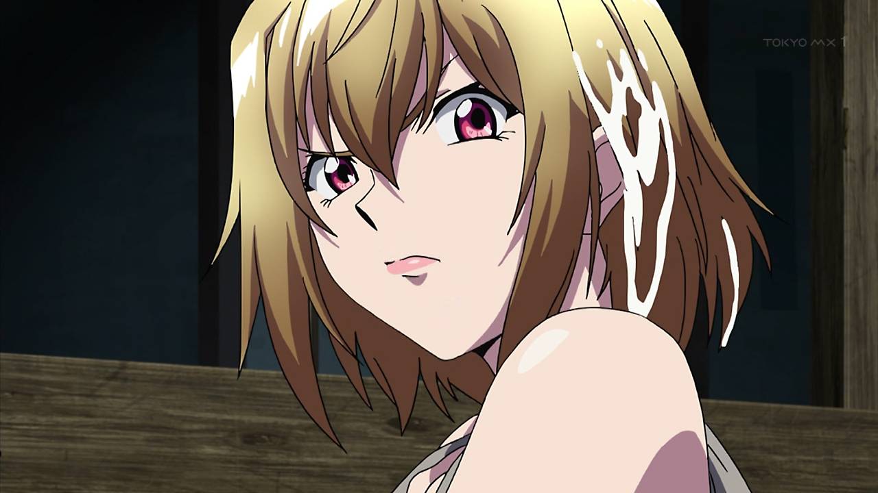 クロスアンジュ 第10話見終えた。雨降って地固まる。絶望の中で、モモカちゃんとは信頼しあえてたり、ヒルダちゃんと意気投合したりとほっこりする展開もあるのいいですわ。あと下も金髪 #クロスアンジュ #tokyoMX