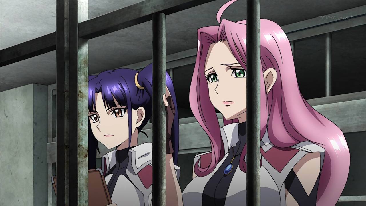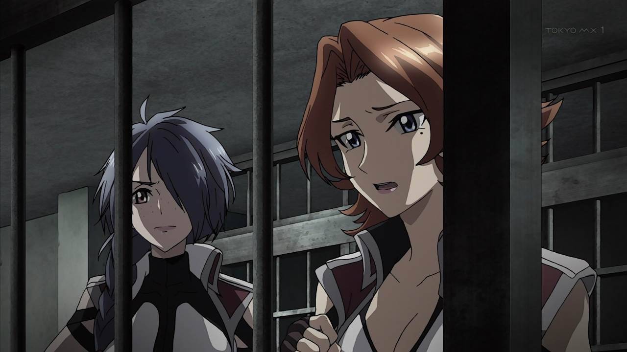 クロスアンジュ10話感想 公www開www鞭www打wwwちwwwwwシルヴィアお前間違いなくアンジュの妹だよ!モモカがアルゼナルに潜入できたの不自然だとは思っていたけど納得。牢の中で語り合うアンジュとヒルダ、何て言うかロックンロールって感じですごくいい。 #crossange
