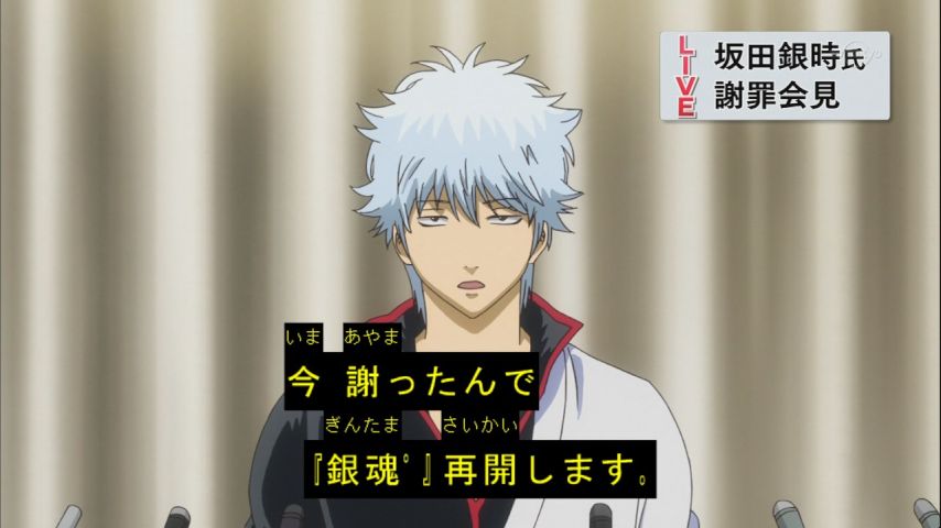 #銀魂 #gintama 新シリーズ第1話。野々村会見のパロディから始まって相変わらずのゲスいパロディと展開・・・変わっていなくて安心した。うん、本当に安心した。そうだよ、僕らの見たかった「銀魂」が帰ってきた。これを喜びと言わずに何と言う?