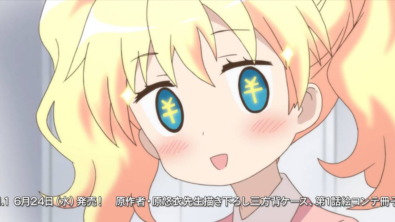 ハロー!!きんいろモザイク 5話。クッシー先生は私服も悪くないじゃないか!Bパートのわらしべ長者で綾が陽子とのツーショットを金の力で手に入れようとしてたのがなんというか・・・素直にもらっちゃえばいいのにね。