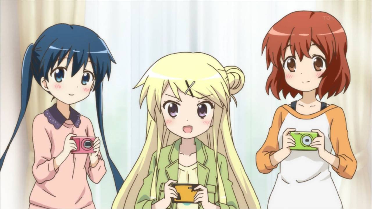 ハロー‼︎きんいろモザイク第5話を視聴。勇さんと忍ちゃん達でカメラを持ってお出かけですね。久世橋先生の可愛い私服を着てる所をカレンちゃんにちゃっかり写真撮るとはw アリスちゃんのわらしべ長者を読んだ後の一攫千金狙い顏がw #kinmosa