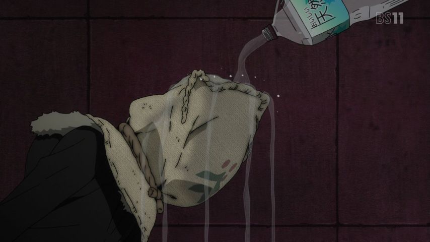 『#デュラララ!!2 転』第20話。アンフィスバエナとは何だったのか。麻袋の下の顔、臨也かと思わせて臨也じゃないのかと思ったらやっぱり臨也でした。まぁこいつはこういう奴ですよね。次回「口八丁手八丁」。次週も臨也のターン? #デュラララ転20話 #drrr_anime #bs11