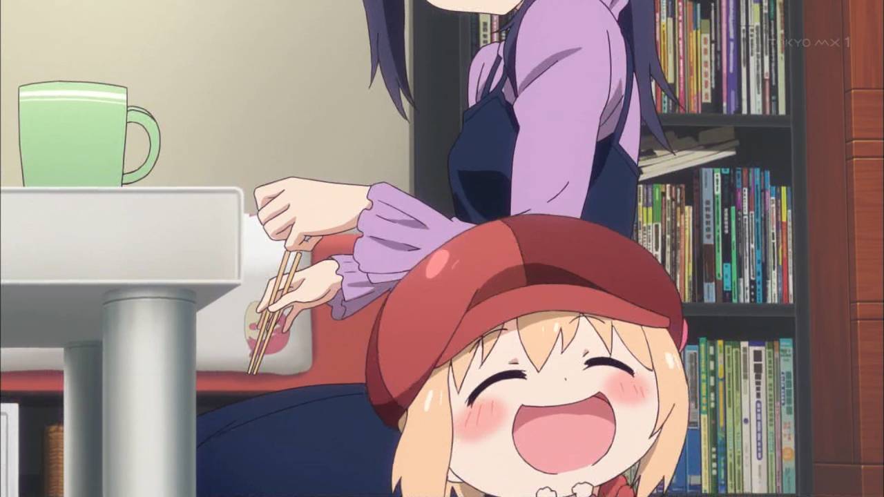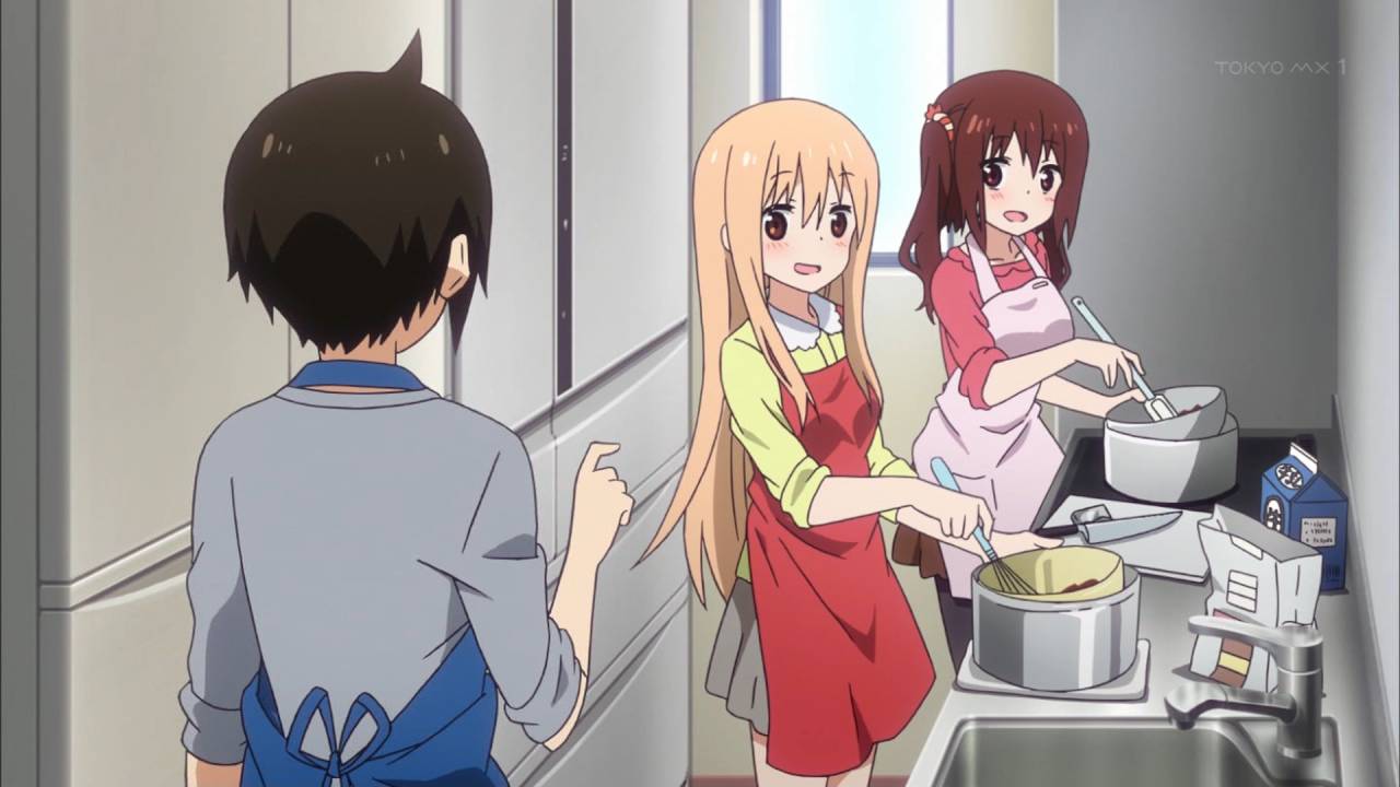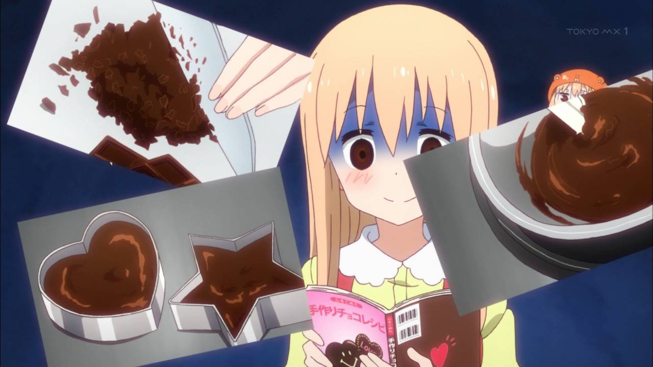 干物妹!うまるちゃん 第9話見終えた。バレンタイン、というよりは料理回。最近きりえちゃんが大変良い、ヤンユリ良い……。パロとかも含めて全体的に楽しくてかつうまるちゃんがお兄ちゃんといちゃいちゃするの眺めるのいいわ #umaru_anime #tokyoMX