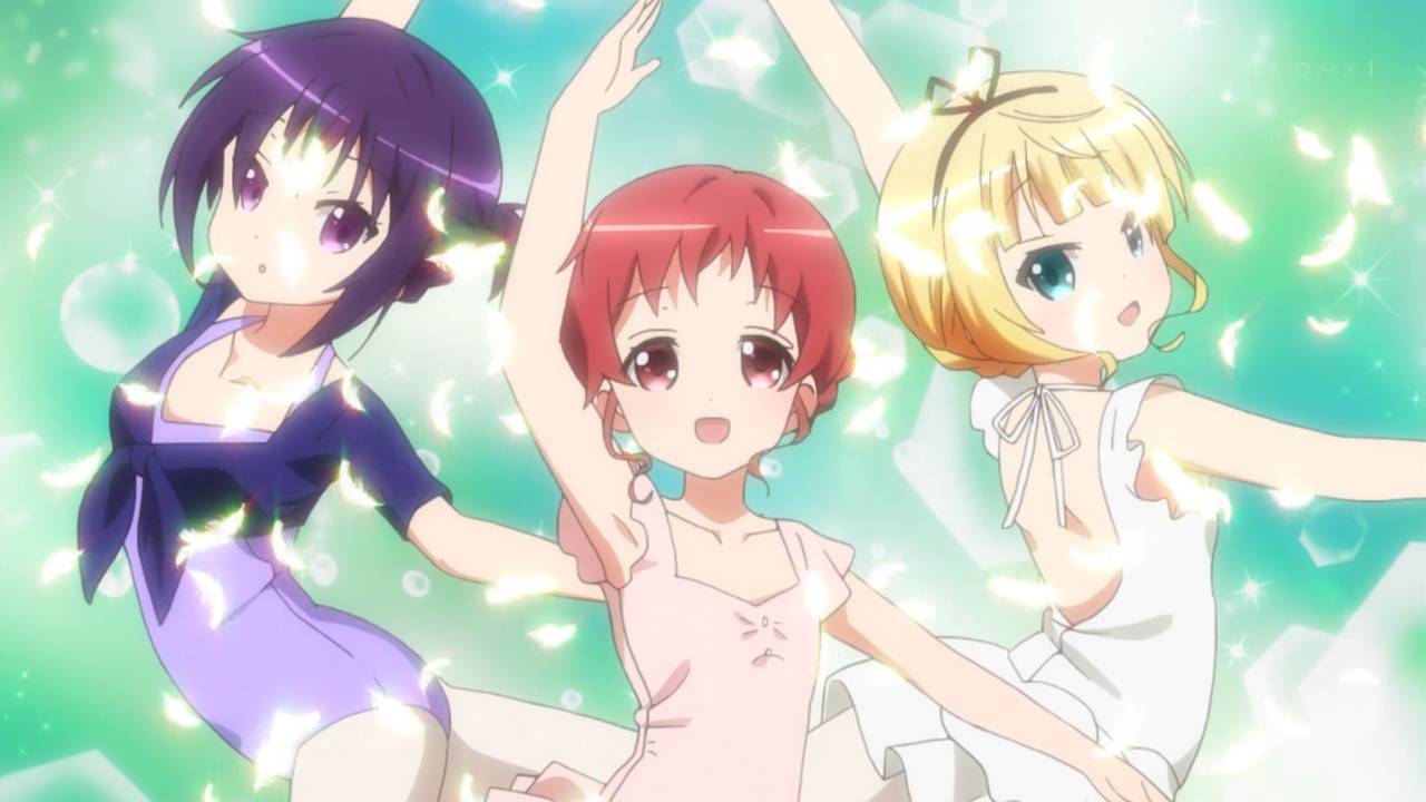 ご注文はうさぎですか?? 3話。チマメの特にメグ回ということで,おとなしいキャラな分わりを喰うことが多かったメグの色々な側面が見られたのは良かった。体操着のへそチラやレオタードなどなかなかフェティッシュな回でもあり,ごちうさらしさを突き詰めるという意味の方向性としては正しい感じ。