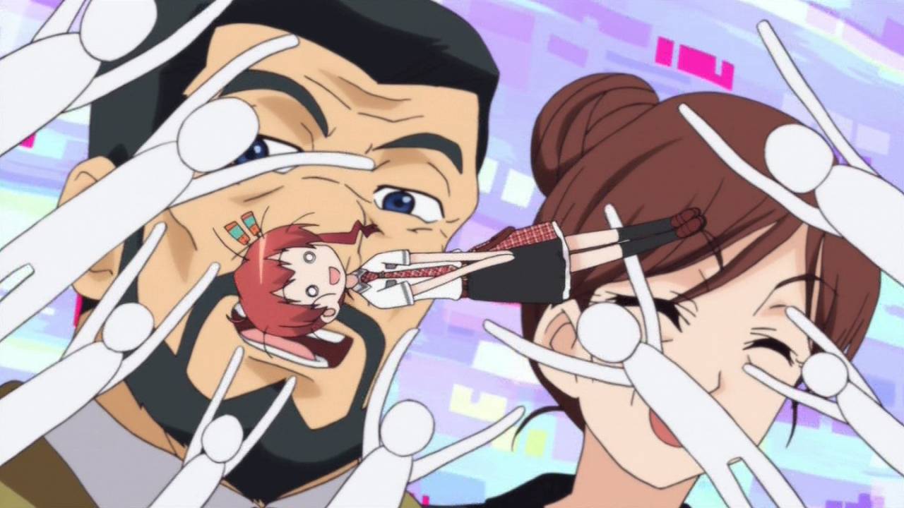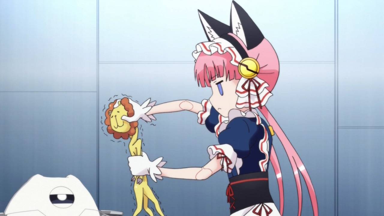 紅殻のパンドラ4話。たくみちゃんのブエル解剖計画と福音クラリンの社会勉強。止め絵・デフォルメ多用はちょっと予算苦しそう。。クラリンが福音の怒りを汲んで暴漢に向かったのがハイライト。福音の影響で、段々と人間らしさを身につけて行くクラリンたそ可愛い(^ ^) #kpandora