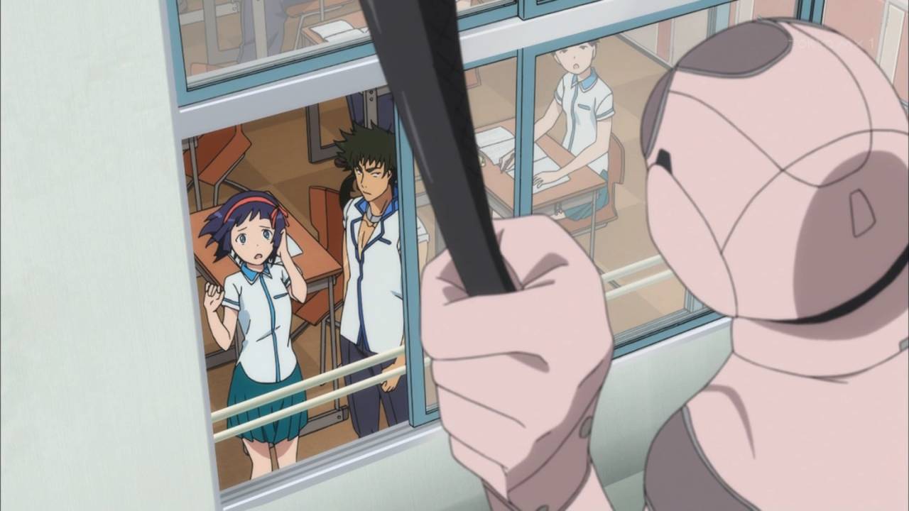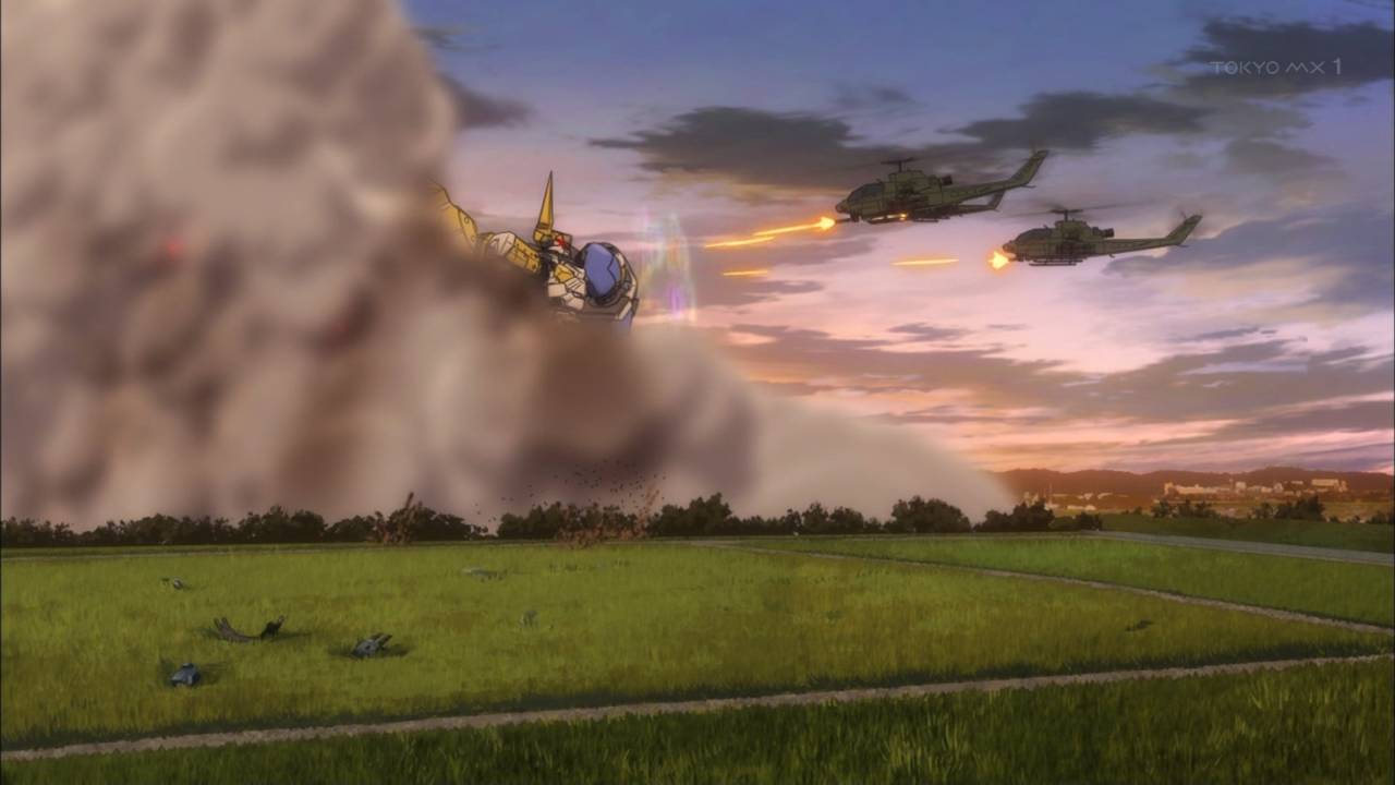 流石に5話目でテンポも作画も落ちついてきちゃったかなと思ったところに、敵の来襲で一気にテンションアップ。やはりP.A.らしい美麗な街並みにロボットが立つ絵はグッとくるねぇ。敵が3体、味方も3体なので、来週はチーム戦ということか。