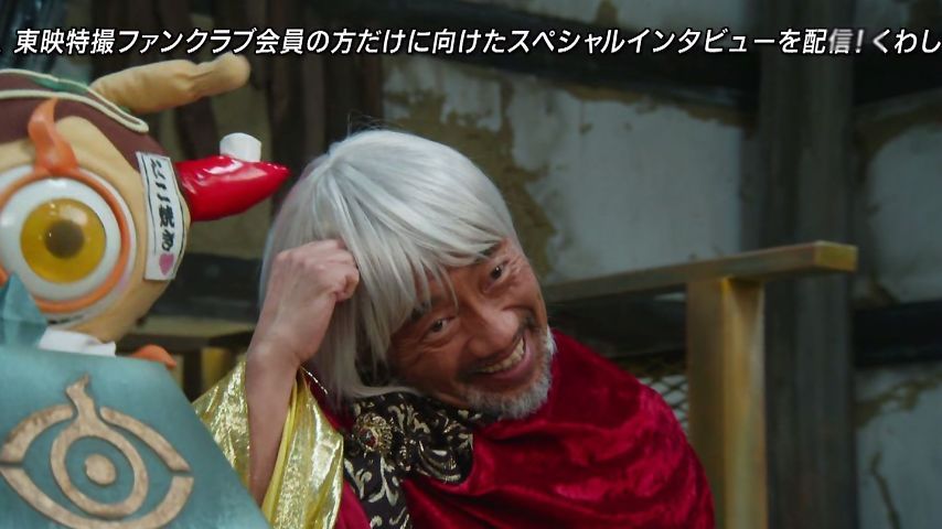 ゴースト第42話、おっちゃん、正体はイーディス長官で本性は仙人といったところか。しかし酷い正体のバレ方だった。これは竹中直人さんでないとできないな(笑) #仮面ライダーゴースト