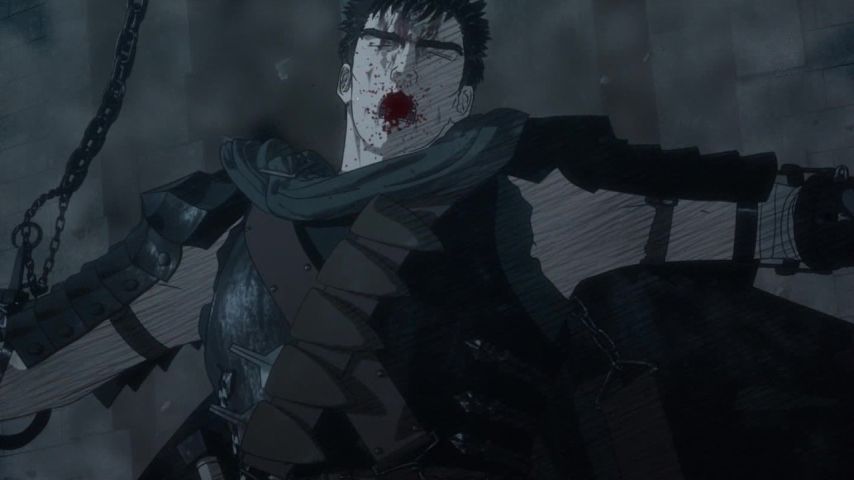 『ベ ルセルク』10話視聴。岩石ハゲは使徒もどきに変貌しても揺るがないなwまたもやキャスカと引き離されて、弟子たちに苦戦強いられ、覆らぬ劣勢下のガッツ の見せ方も巧かった。それと最近感じてきたがCGと手書き(風?)の押し引き良いね。&vquot;味&vquot;があるよ。CGアニ メで。 #berserk