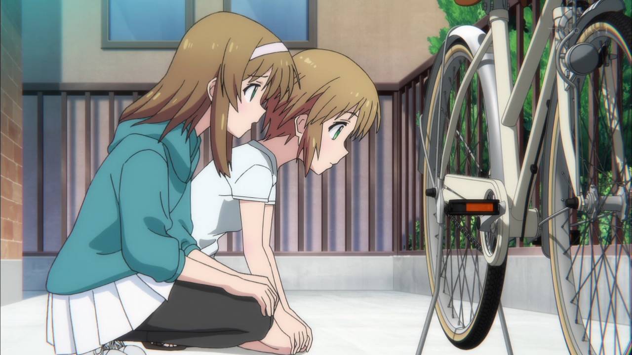 「ろんぐらいだぁす!」第10話:オータムライドも無事終わり、亜美は筋肉痛の体を引きずりつつ自宅へ。それと、恵美が初めて自転車に興味を持つきっかけが「亜美にパンクを修理して貰った事」というのが良い。亜美の自転車好きっぷりを、恵美は初めてリアルとして感じたんじゃないかな。
