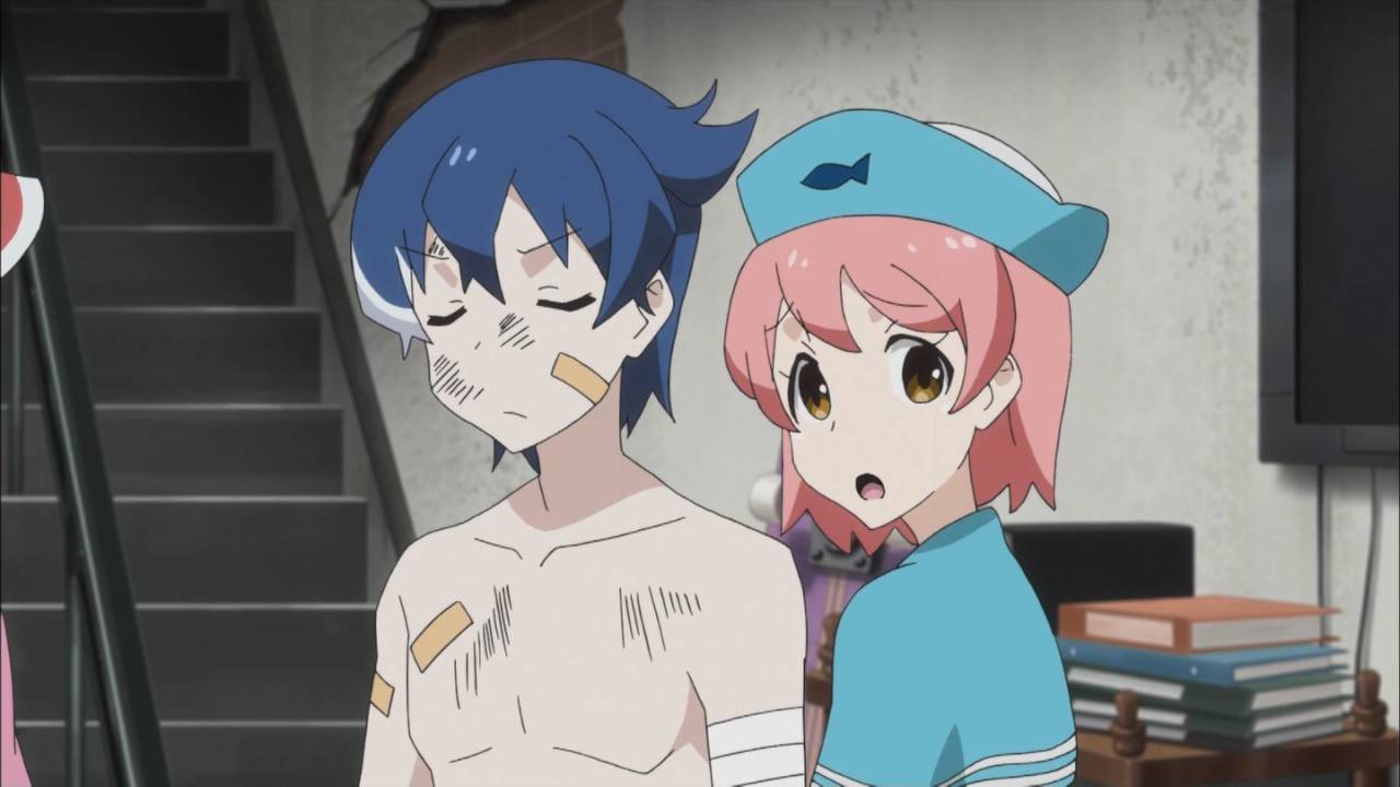 #アキバニ 4話。電波だから「ゆん」か。いきなり敵の攻撃がスケールアップしてる。タモツは半裸でも大丈夫なのか?なんかオタク描写から学習漫画方向へシフトする変な回だった。1話の感想の時にも書いたけど初期ケロロとか吉崎観音の仕事や同人のノリに近いものがある