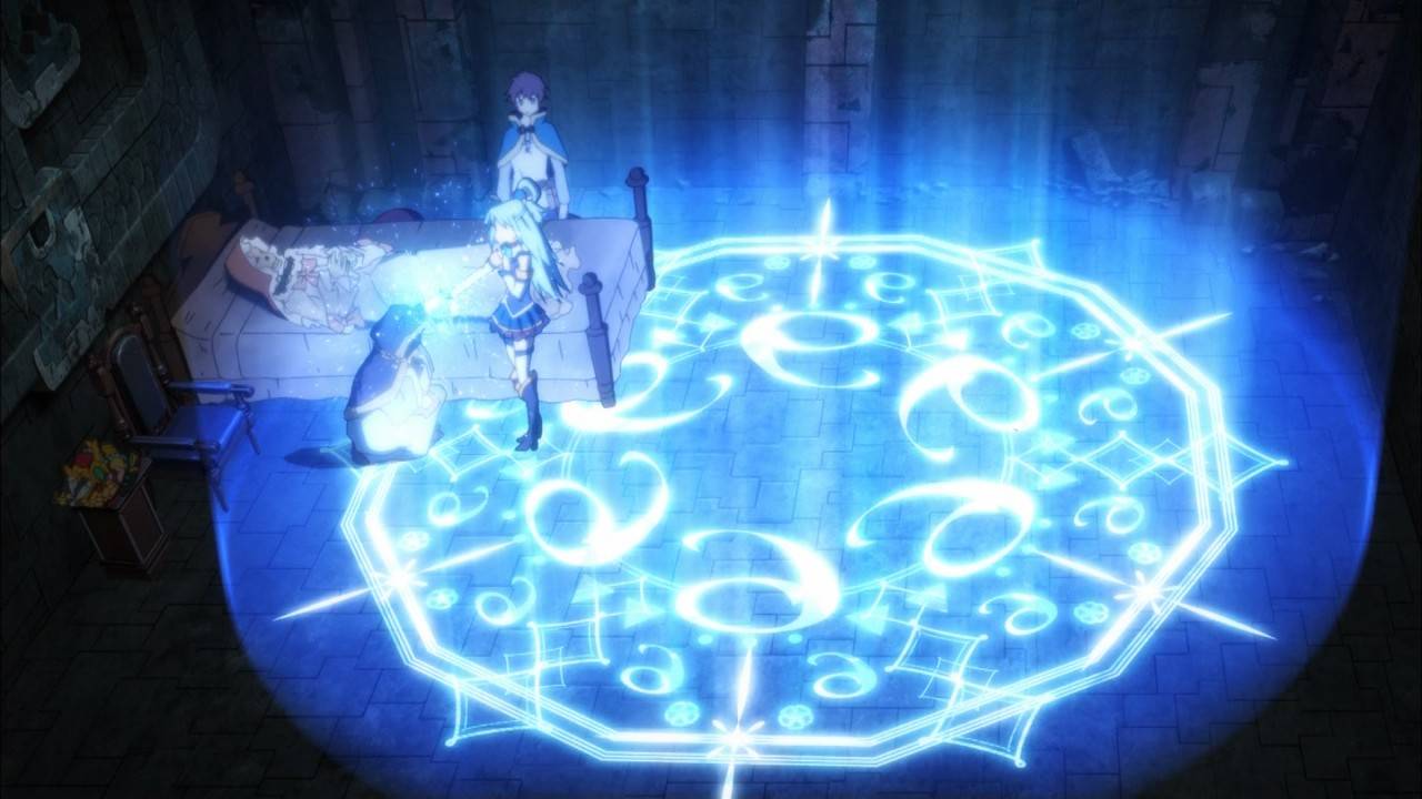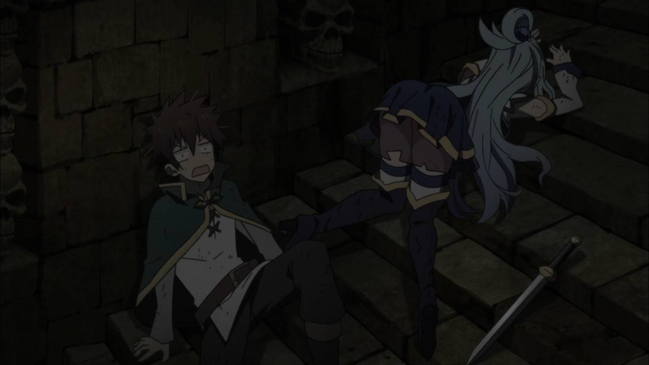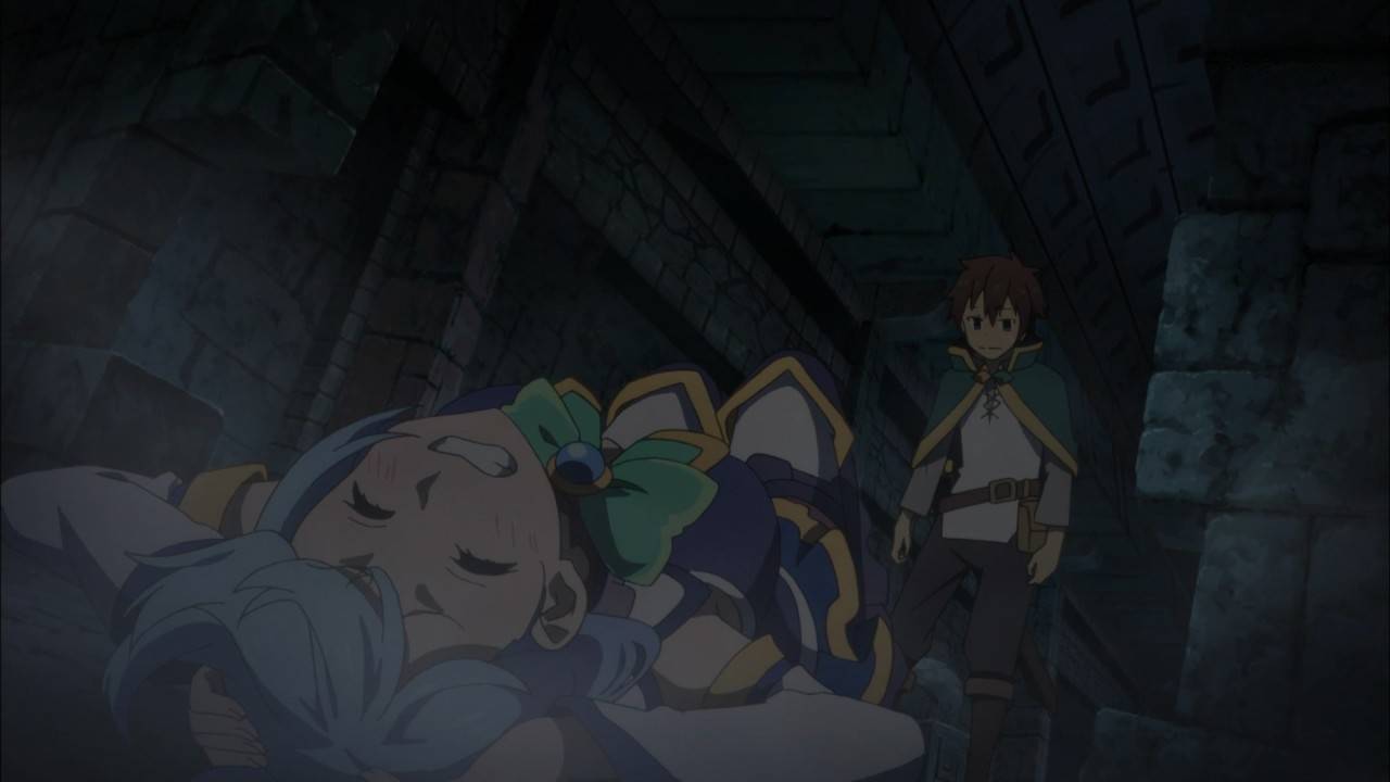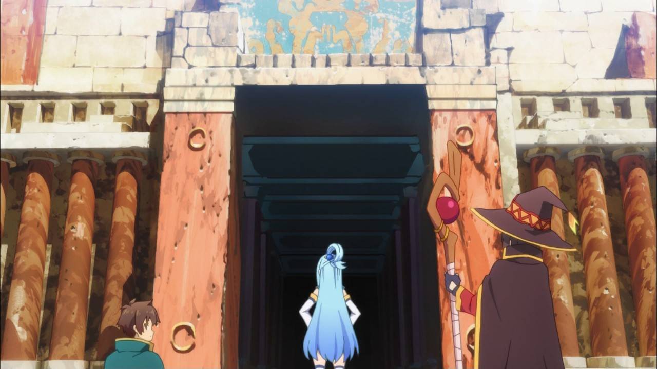 この素晴らしい世界に祝福を2 3話。お宝求めてダンジョン探索。珍しく女神としての活躍を見せつつ、ギャグ要因としての仕事もきっちりこなすアクア。ターンアンデットから花鳥風月、そしてゴッドブローへの繋げるコンボは秀逸。しかしもう少しはっちゃけてても良かった気はする。#konosuba