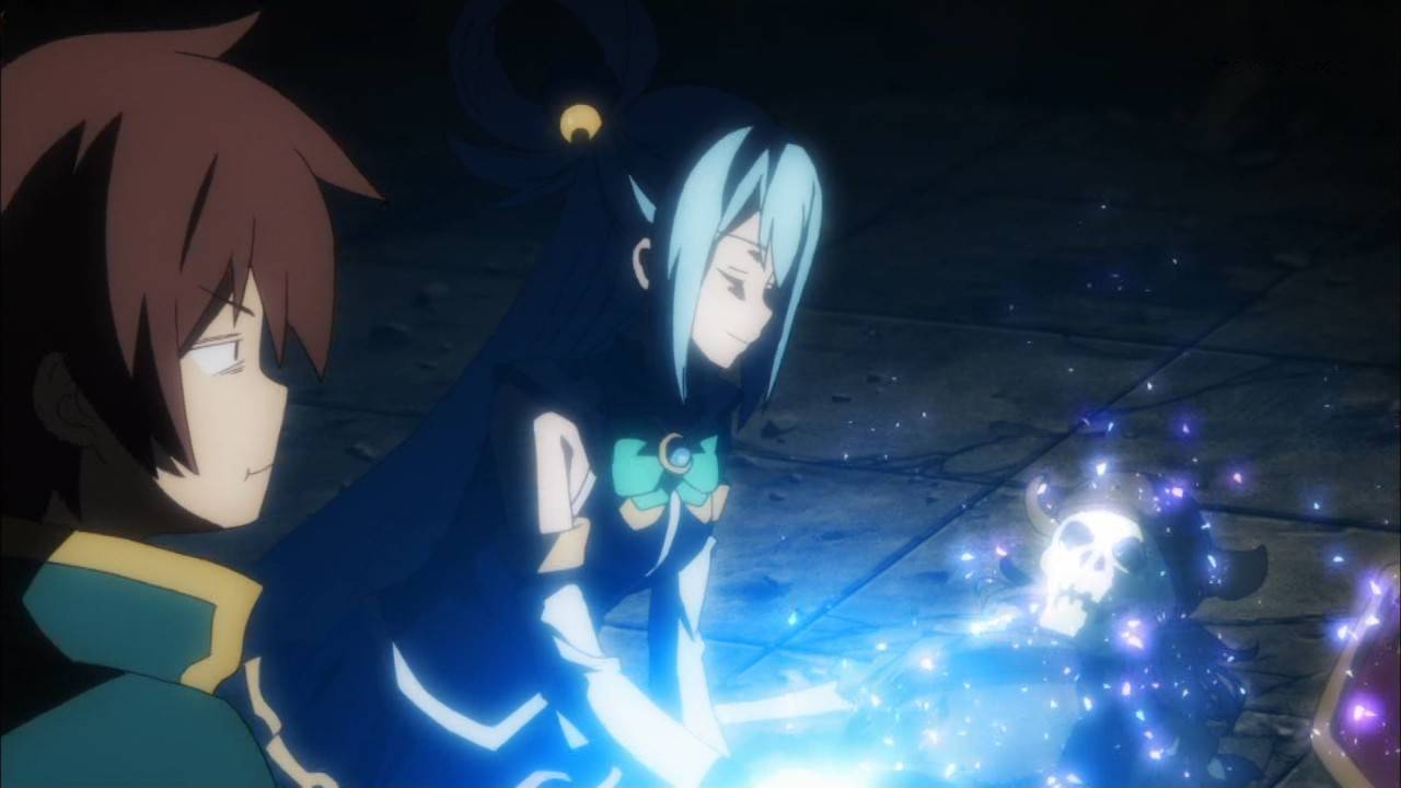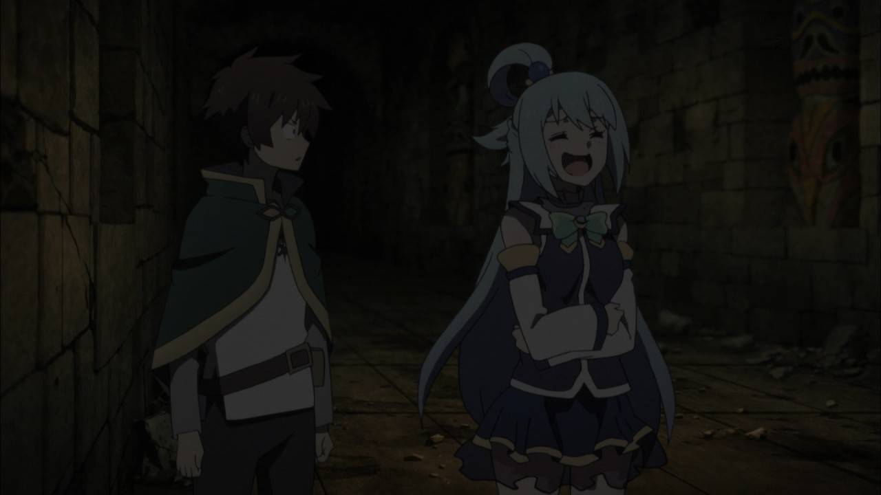 このすば3話、ダンジョン探検回。アクアちゃんが女神さましていた。そして作画が良かった。アクアちゃんが可愛かった。そしていつもどおり面白かった #konosuba