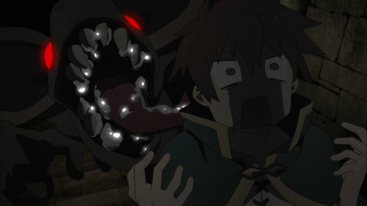 「このすば2」3話。借金返済と生活のため、未踏のダンジョンに挑むカズマとアクア。留守番のめぐみんはチョム助と戯れるw 愛する妻のため、自らアンデッドになった伝説の魔術師リッキーの物語にちょっと感動。あれ?…これ、このすばだよね? でもラストはいつも通りの乱痴気騒ぎw #このすば