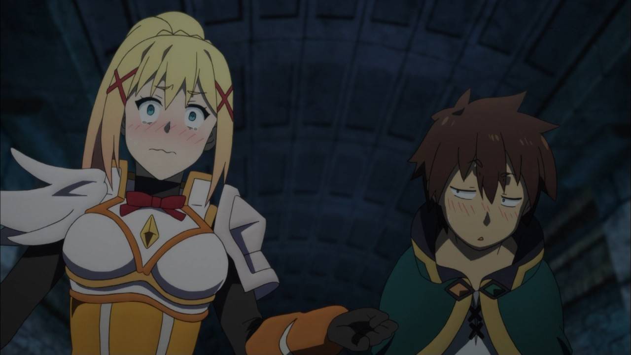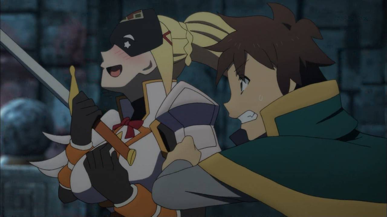 この素晴らしい世界に祝福を!2第5話、今回もダクネス活躍回!またしても駄女神の影響で魔物が出てきてしまう。その正体は魔王軍の幹部バニルだった。バニルの仮面がダクネスに乗っ取り、仮面を取る為に爆裂魔法を自ら浴びてしまうダクネスしかしなんとか助かり無事借金も返済 #konosuba