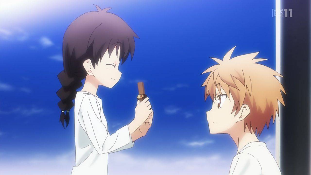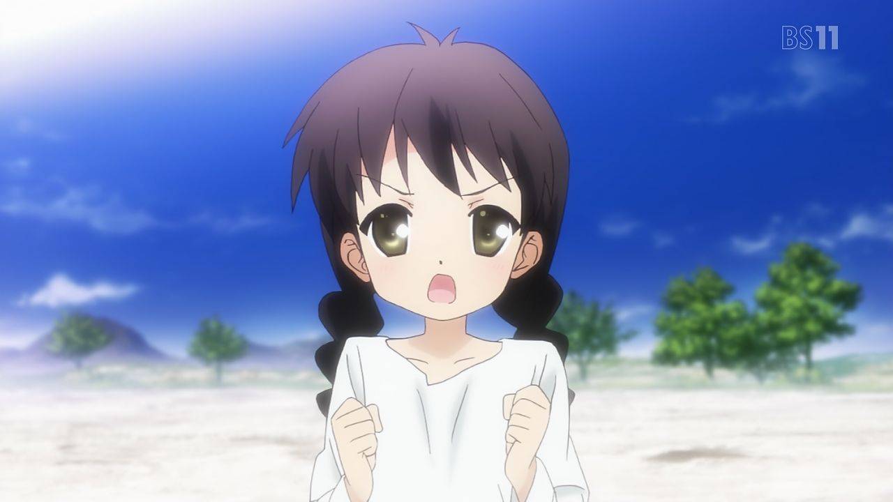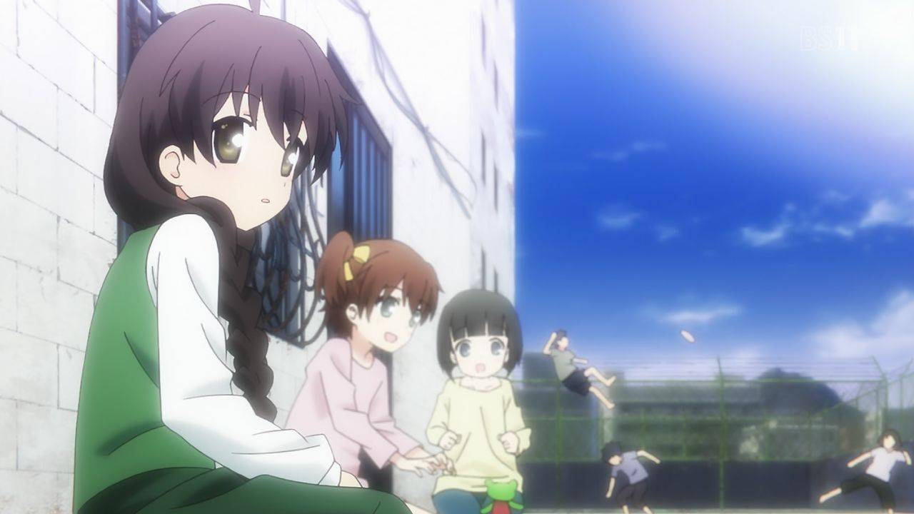 Rewrite20話、ヤスミン可愛い。原作だと後ろ姿のCGが1枚あっただけだからな…。原作では助けた子供はヤスミン含めて3人でミドウ達がいたかは不明だったけど、アニメでは分かりやすい感じにしたのかな。