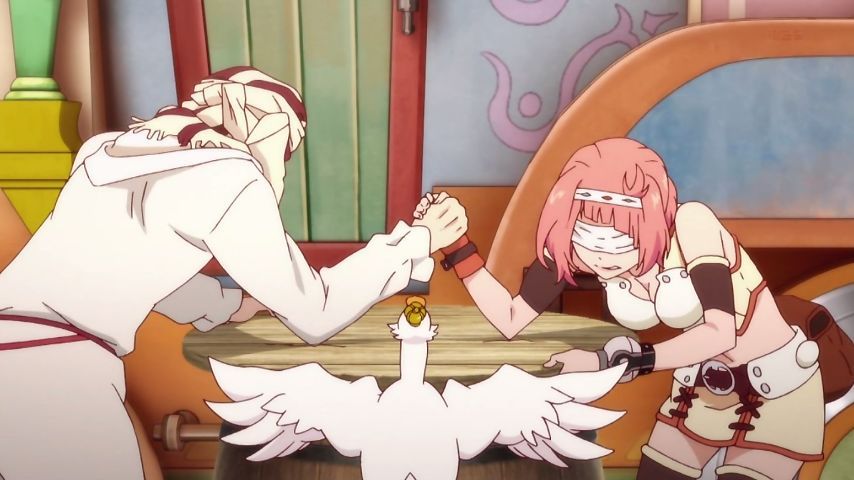 腕相撲で稼ぐニーナ。ここで正体隠した王様と絡め、ファバロと師弟関係だったこともわかる今回色々とうまいw。
