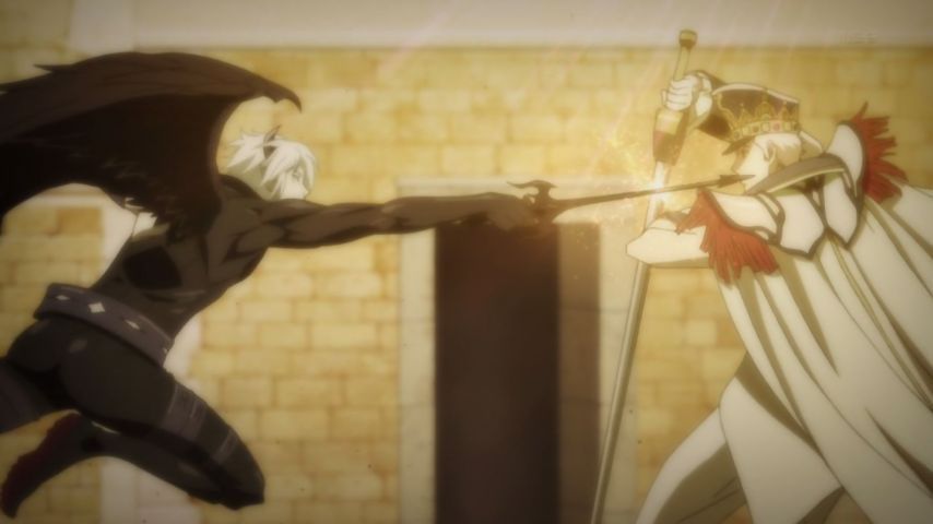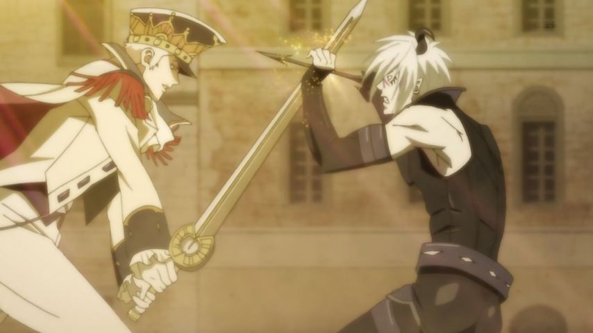 『神撃のバハムート VIRGIN SOUL』第8話。三つ巴の殺陣とかすごいものを見た。結果的にアザゼルさんを殺さずに済んだことをシャリオスはカイザルに感謝しているのかもしれない。ファバロまずは脱獄からだな。 #バハソウル