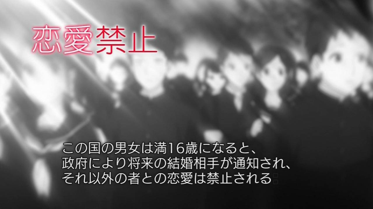 恋と嘘 1話。政府が決めた相手としかつきあえないってのは面白いな。なんかシステムに誰かが意図的に介入した可能性が否定できないけど、基本は隠れて本命の子とどうにかつきあうえる道を模索していく話になるんだろうか?