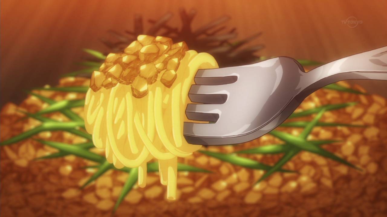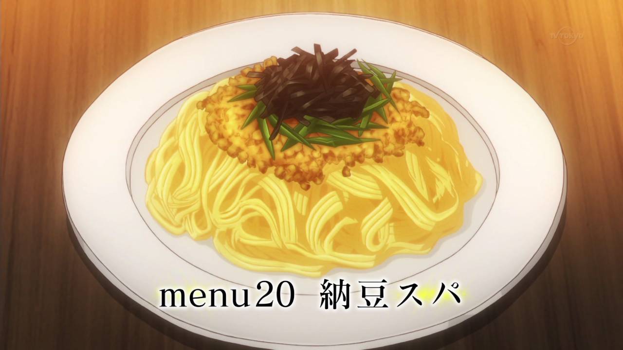 異世界食堂10話。エルフが納豆スパゲ ティを美味しそうに食べている。「待て!この納豆とやらにあわせられるもっといい組み合わせがあるはずだ。そうだ、白米だ。白米は納豆にあうはずだ」「バカな!納豆がパスタ以外にあうはずなどあるものか!」というやりとりはすごくおかしくて笑ってしまった。