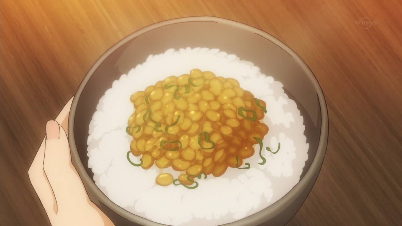 【異世界食堂】第10話 納豆ご飯か。まぁ、洋食屋で頼むにはアレかもしれんが、そもそも異世界の住人からすりゃ和洋かんけーねーしな。しかしエルフちゃん味噌好きなんだな。漬物とかもいけそう。 #May_ani