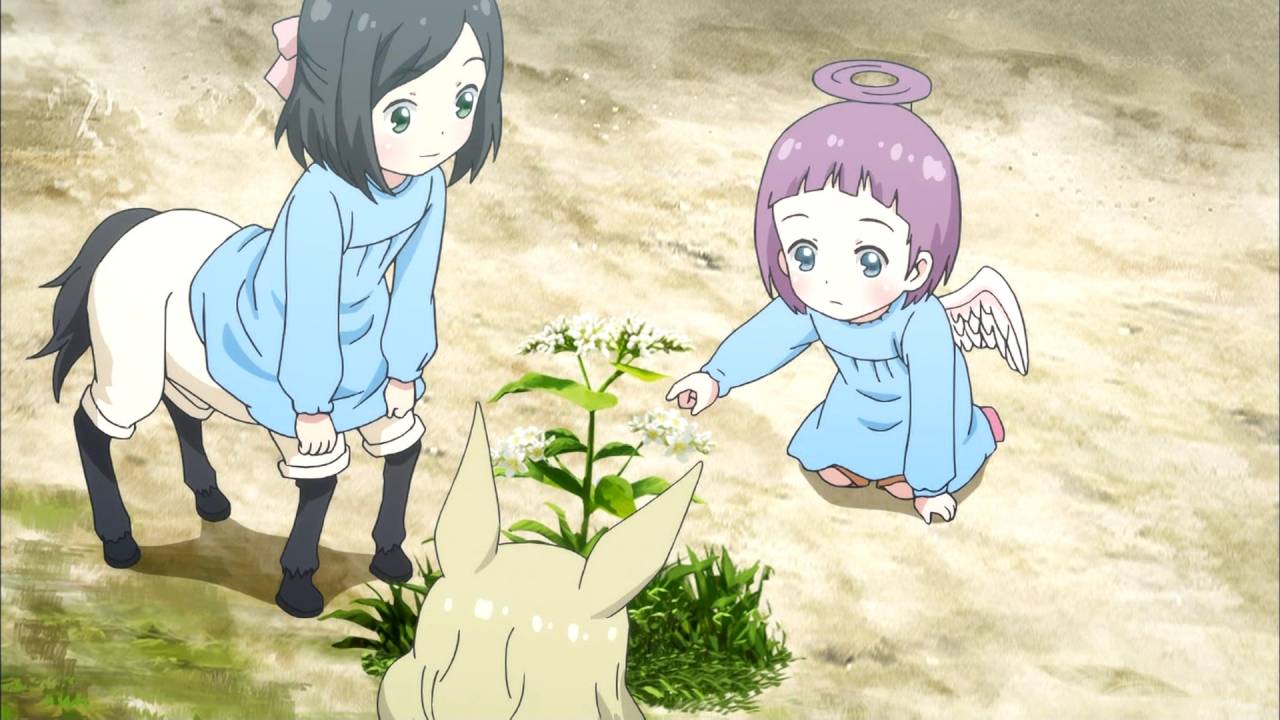 セントールの悩み11話視聴。図形と野草の話。姫乃が野草について詳しく解説。その受け売りで紫乃が友達に解説。幼稚園なのに小難しい話してるしませてんな。すえちゃんは完全に人形扱い。犬に襟首掴まれて犬小屋に連れて行かれるすえちゃん可愛すぎる。 #セントール