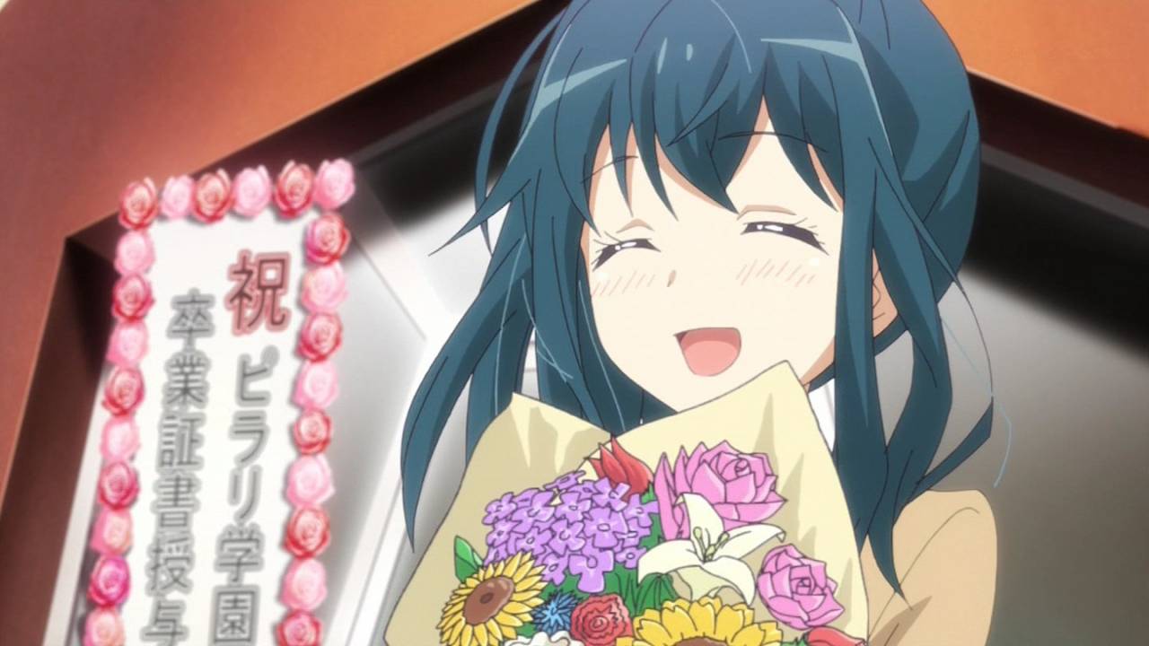 夕子先輩たちの卒業と共にニーナも学園を去る…という展開に成らなかったところが友達感溢れる良い纏めだった。最後の川落ちは良いね。本作らしい綺麗な終わり方だったと思う。何気に楽しかったです。