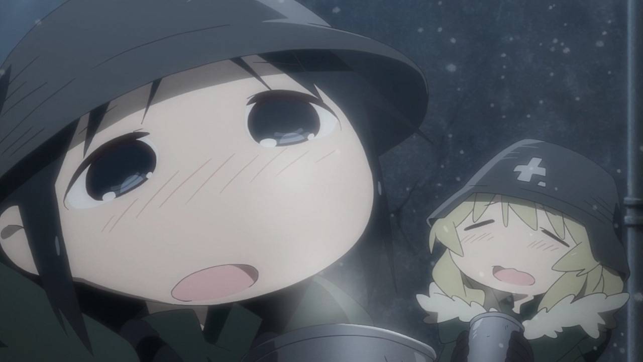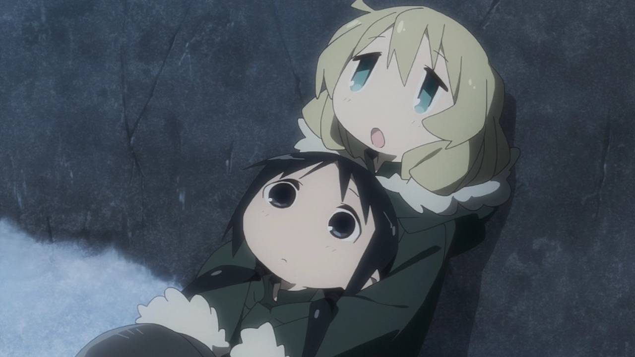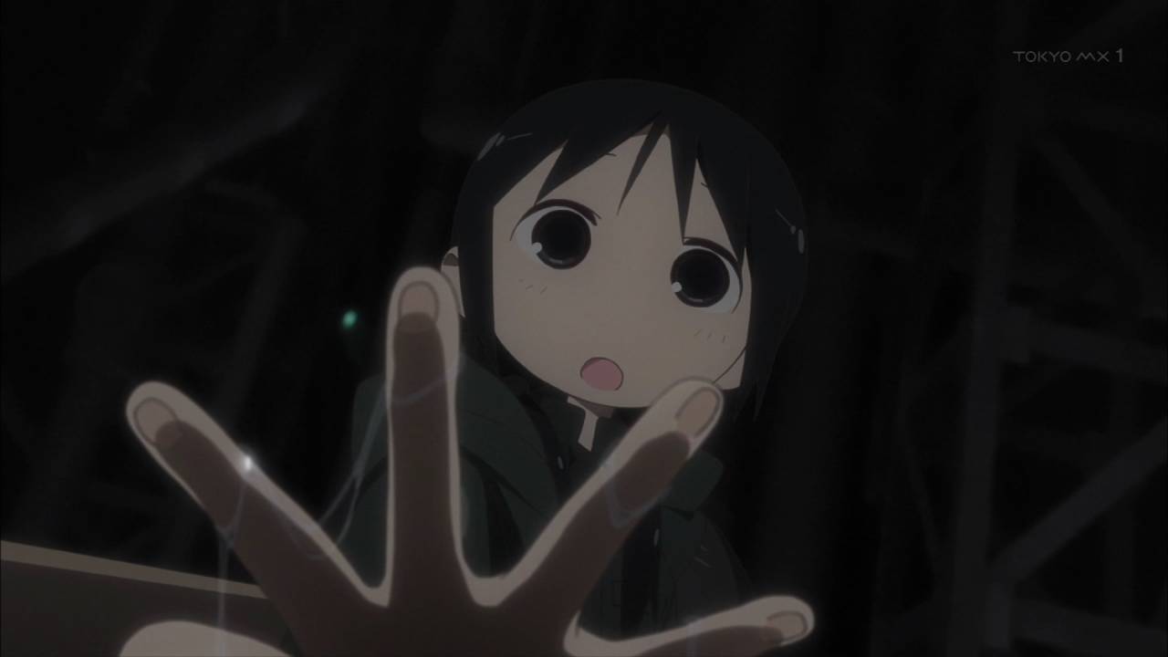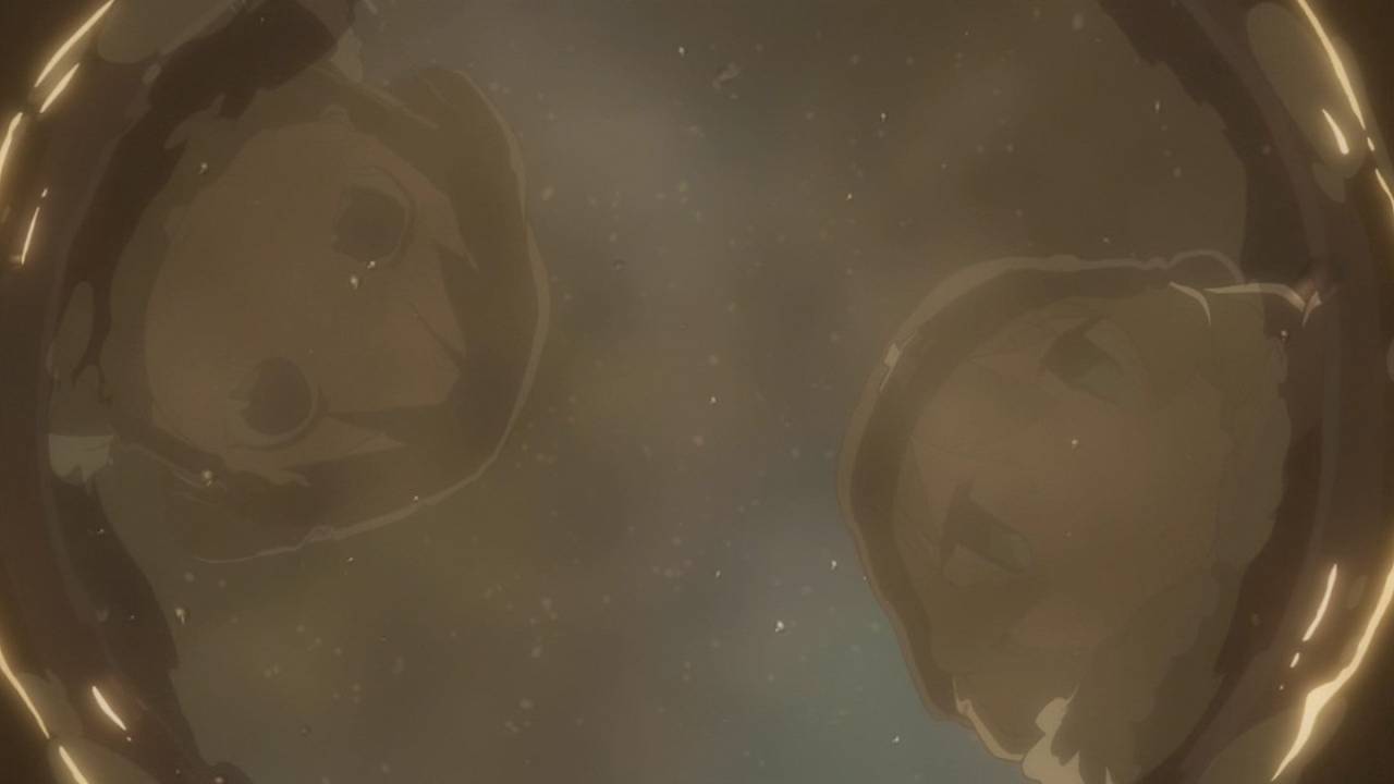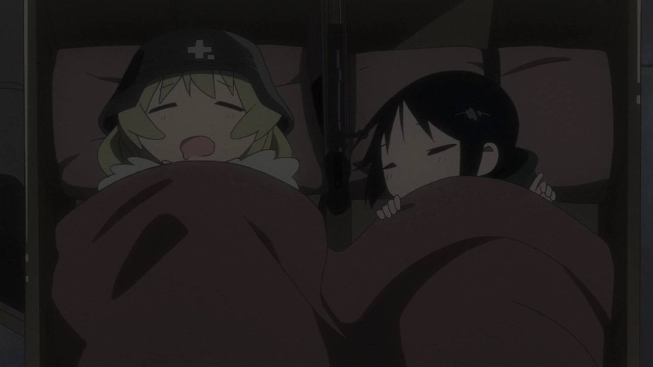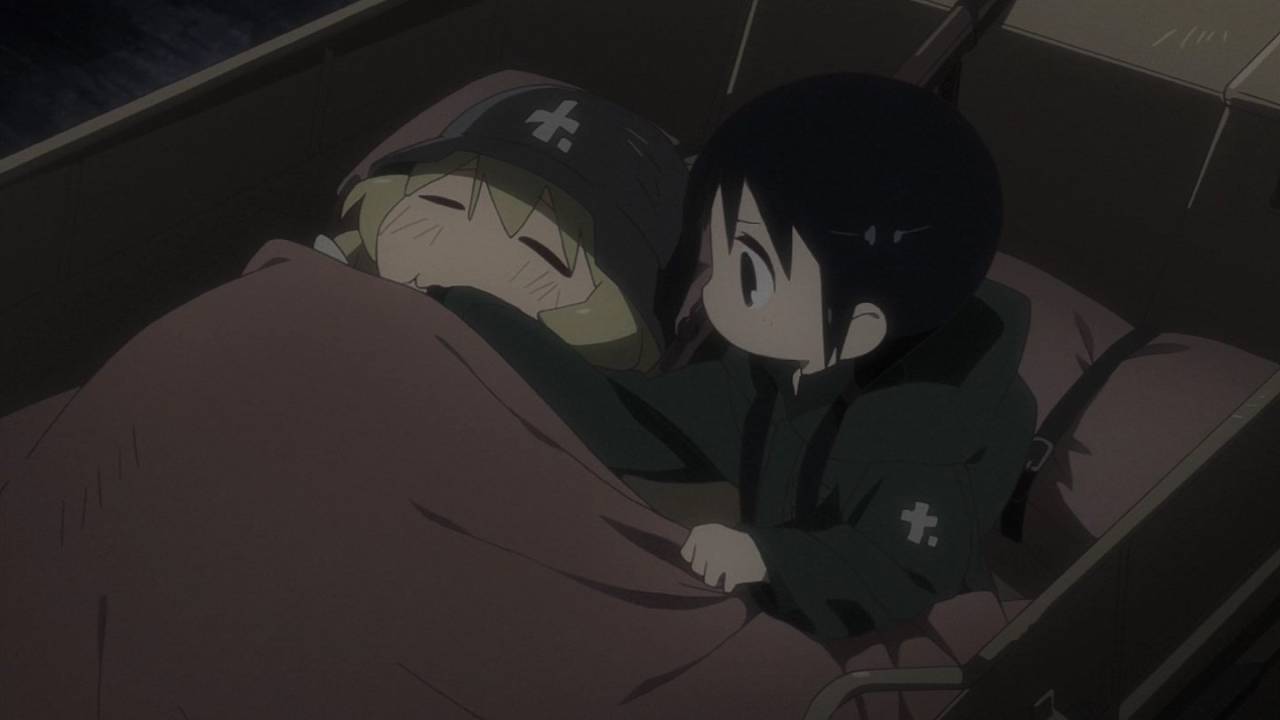 「少女終末旅行」1話。文明が崩壊した地で彷徨うチトとユーリ。星空に驚き、スープを味わい、食べ物をめぐっての諍いさえじゃれ合ってるかのよう。生存だけが目的のような彼女らにも日常がある。絶望的状況の中での彼女たちの生活と笑顔に、満たされた生活をしている自分が癒される。#少女終末旅行