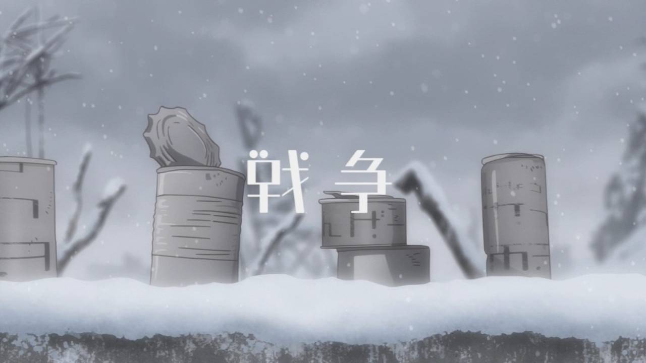 「戦争」のプロペラに乗るシーンと雪食うシーンは原作本編にはないけど、それぞれ2話の表紙絵と2話最後のおまけ絵?を元ネタにしてるっぽい