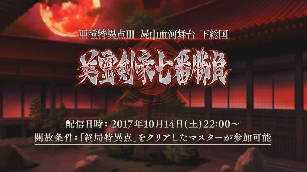 10月14日(土)22:00より「亜種特異点Ⅲ 屍山血河舞台 下総国 英霊剣豪七番勝負」開幕!TVCMや新登場サーヴァントの情報など、詳しくは→https://t.co/6Qq9GDrns3 #FateGO https://t.co/thmeodGurv