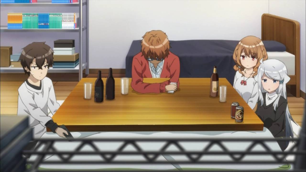 犯罪発生の瞬間。カニエちゃんがもう嫁で良いんじゃないかな。膝枕してる所が完全に。花見に飲み会にと完全にリアル充実してる奴らの集いに見えるんだけれど実は過去に暗い事があったけど頑張ってるからスルー。実際の作家ってどうなんだろうか。