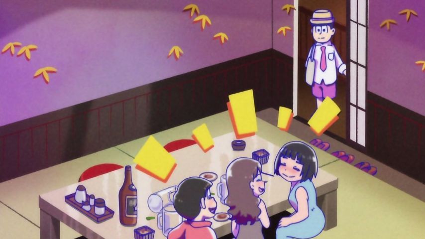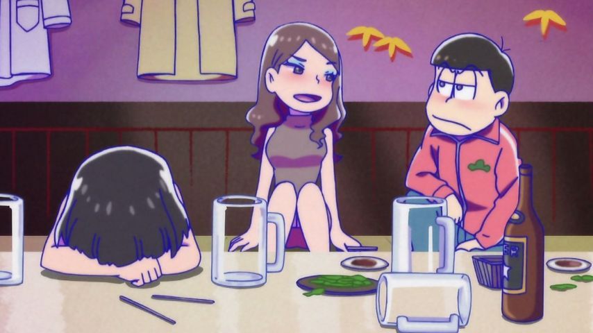 「おそ松さん」7話、声に出して読みたい日本語、御意ー、御意御意ー。合コン回リアルだった。上辺だけの付き合いならソツなくこなせる末っ子と、酔っ払いの本音トークなら愉快に盛り上がれる長男。2人を足して割って定職に就けば彼女出来るんじゃね。