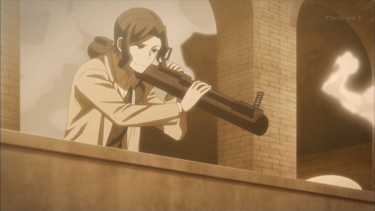 「キノの旅」7話 これ、塔から降りてきた時に一斉射撃じゃ駄目なん?(笑)それを考えられないほどに恐怖感を味わったって事やろか?・・・あ。既に国民に英雄視されてたからカモ(笑)相当後で釣り仕上げられたんやろね~。石碑の文字が小さくて読めないのはせめてもの意地?(笑)