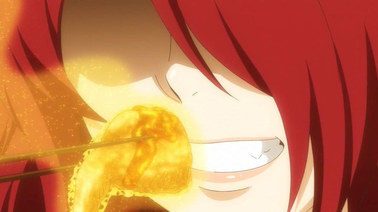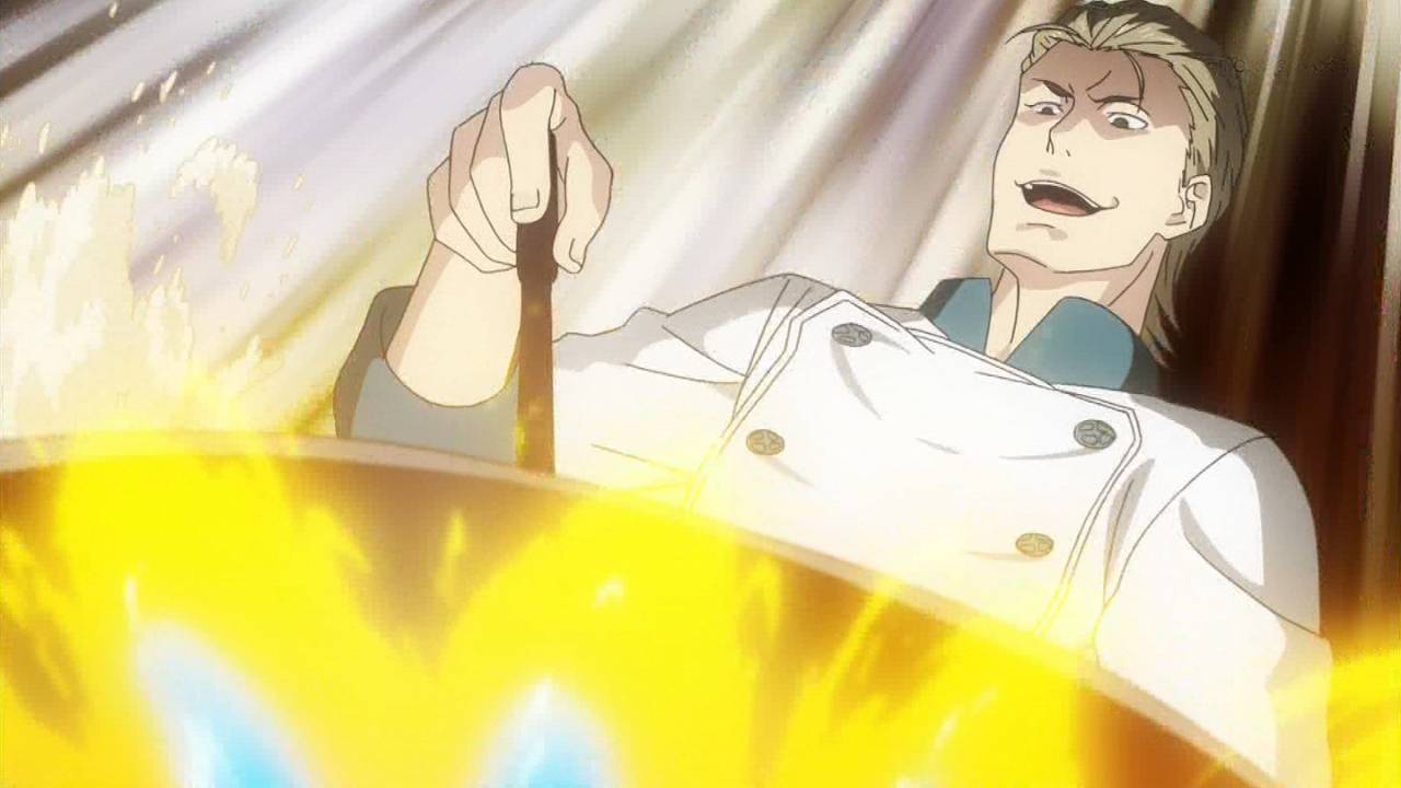 食戟のソーマ8話!先週あんなにぶん殴ってやりたいと思ってたのに顔芸で笑いすぎて叡山への怒りふっ飛んだwww顔wwwていうか本気になって料理し出した時メガネ外したけどなんなのあのメガネは伊達なのwwwもしかして頭良さげに見えるからメガネかけてんのバカじゃないの叡山www