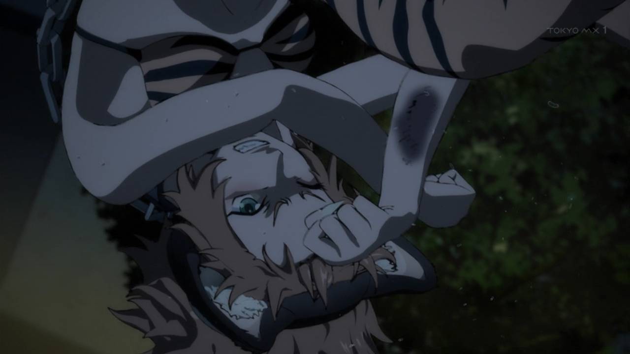 十二大戦9話。超絶アクション作画。ここまでの中ではまだしもまともな方の生い立ちの寅も退場してしまうのか…。