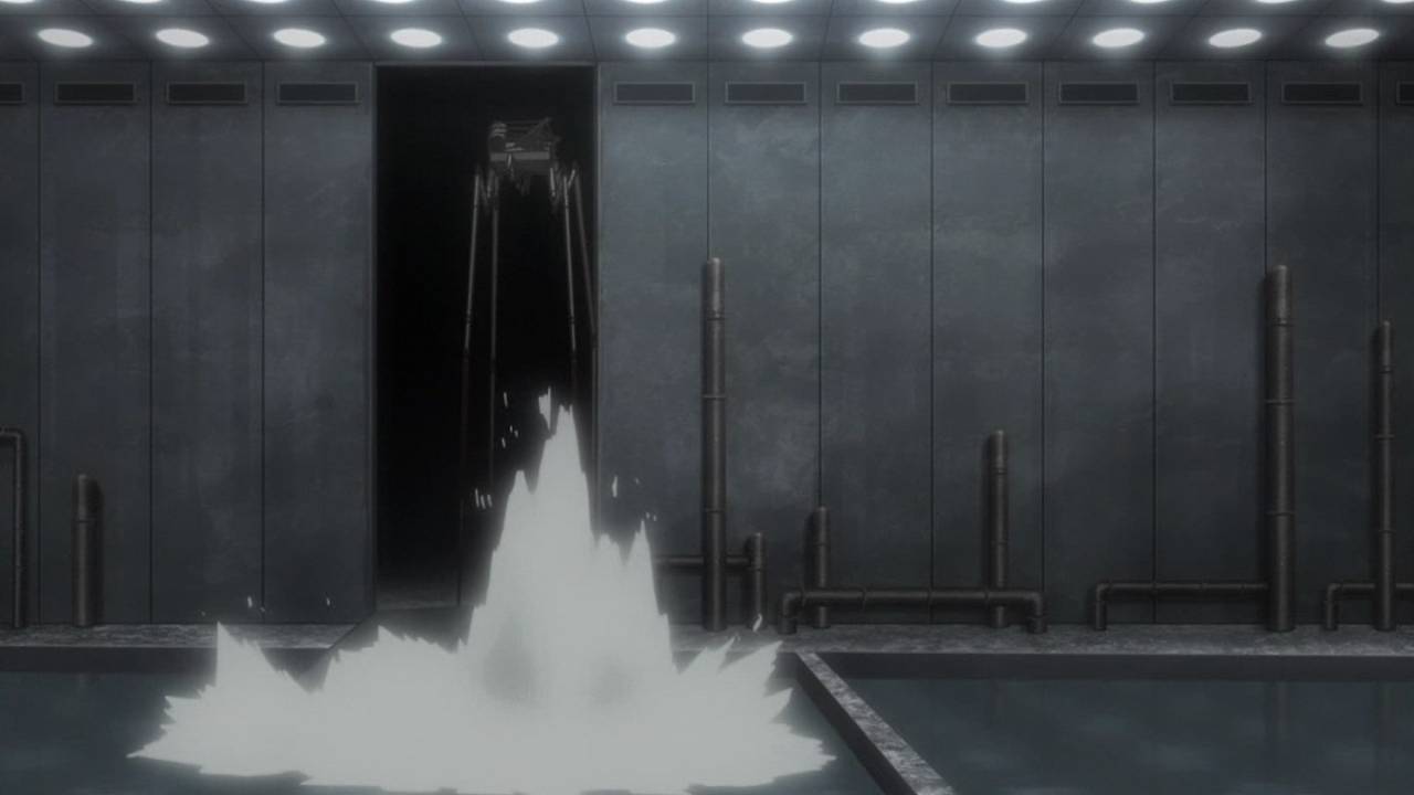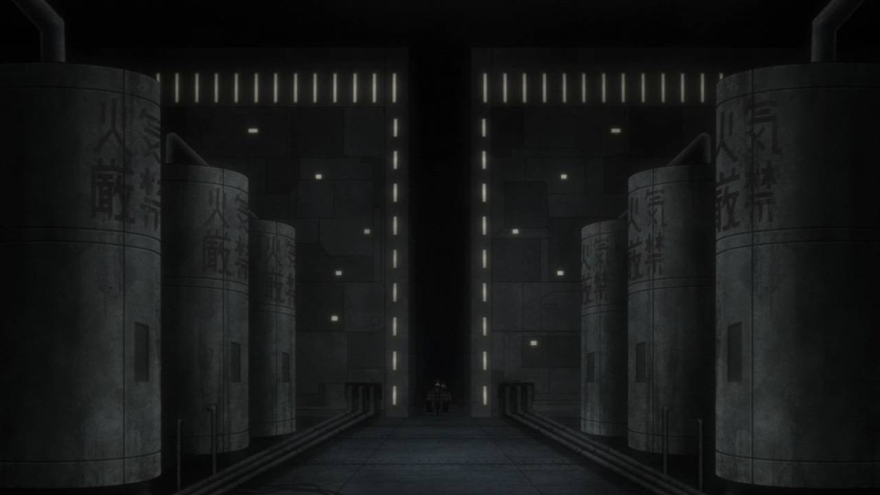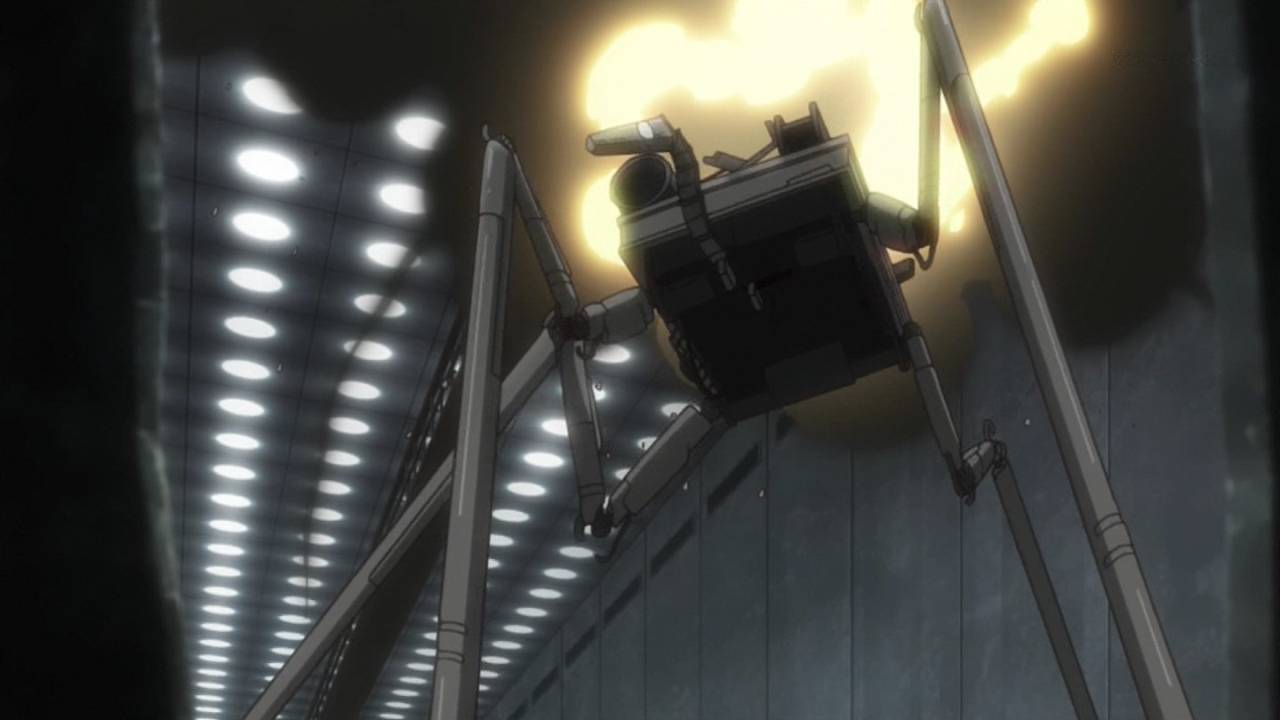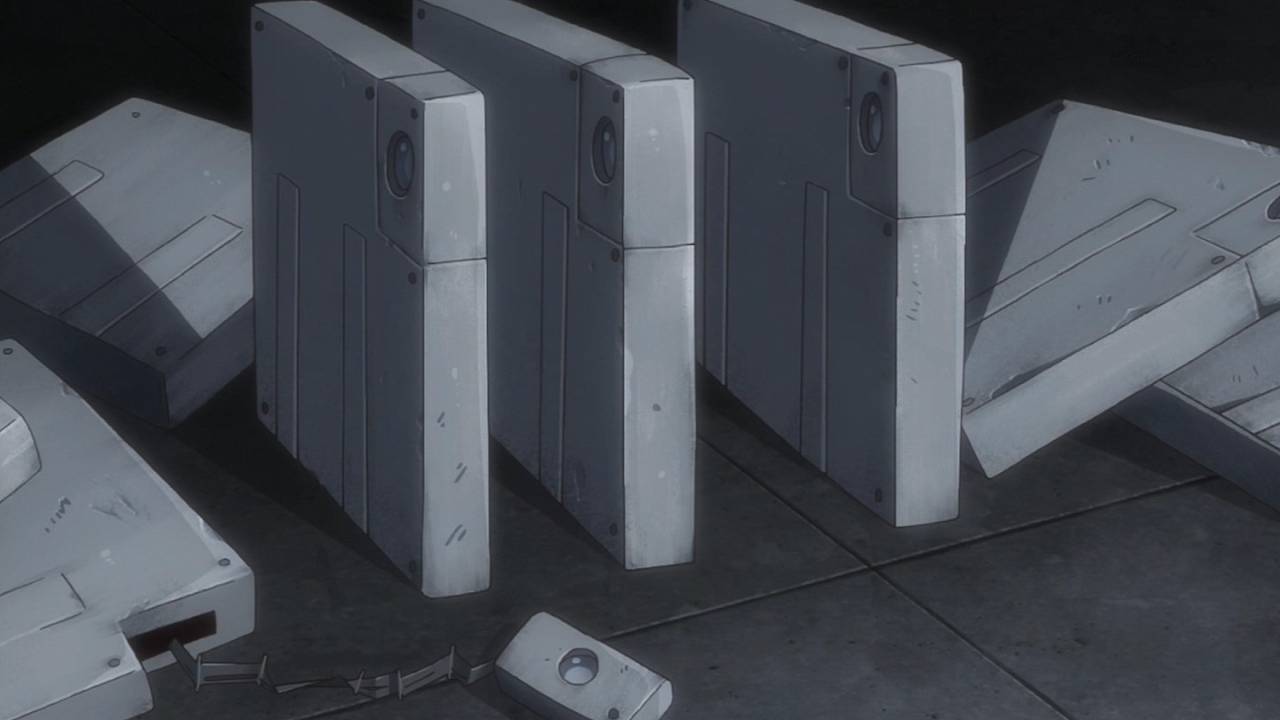 「少女終末旅行」第9話:生命の定義、破壊と進化の同一性。突然変異を起こしたサカナと、自律機械の暴走で破壊されゆくだけの都市。仄かに宗教の匂いすら感じるこの手の話を、機械都市の中でやるというのが凄い。それと、自律機械のデザインも良い。見ようによって、未来的にも原始的にも見える。