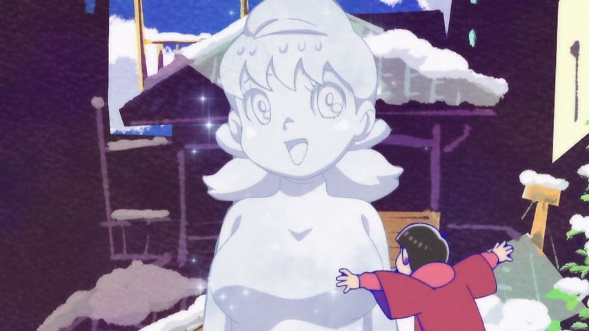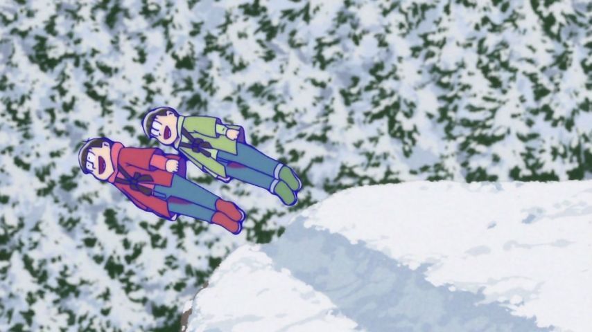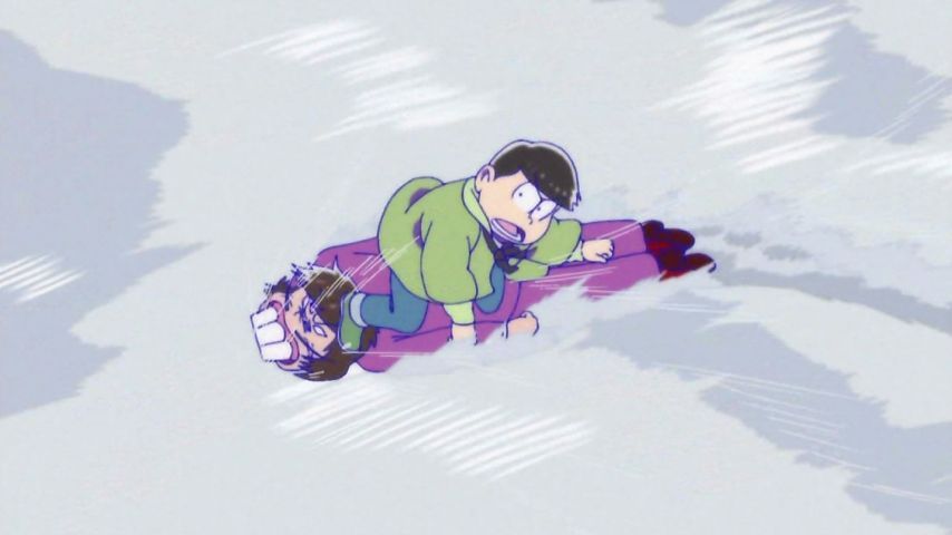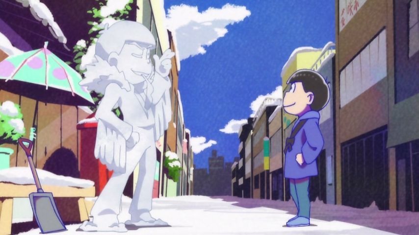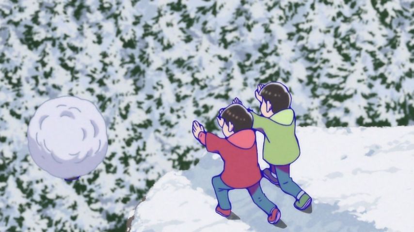 おそ松さん13話。イヤミ人間ボード&雪玉にされて転がるシーンで銀魂の雪山の話を思い出した。一瞬パロネタ?って思ったけど違うのかなぁ。あと末っ子トッティ可愛い。